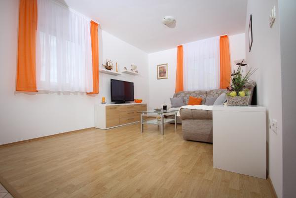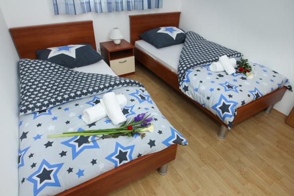 Apartment Škopljanac is located in a quiet part of Kastel Luksic, perfect for your holiday. Located on the first floor of the building away from the beach 400 m and consists of 2 bedrooms, living room with extra bed for 2 persons, bathroom, kitchen and balcony. It is equipped with air conditioning and free WiFi Internet and all other necessary for a pleasant stay. The property is situated between two pearls of UNESCO, Split 15 km and 10 km of Trogir, near the airport and 6 km which can be reached by bus that runs every 20 minutes and is 150 meters from the apartment while for guests who arrive by car there osiguan parking. For any further information we are at your disposal