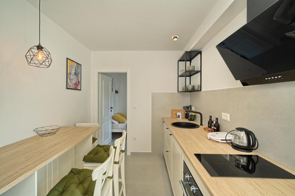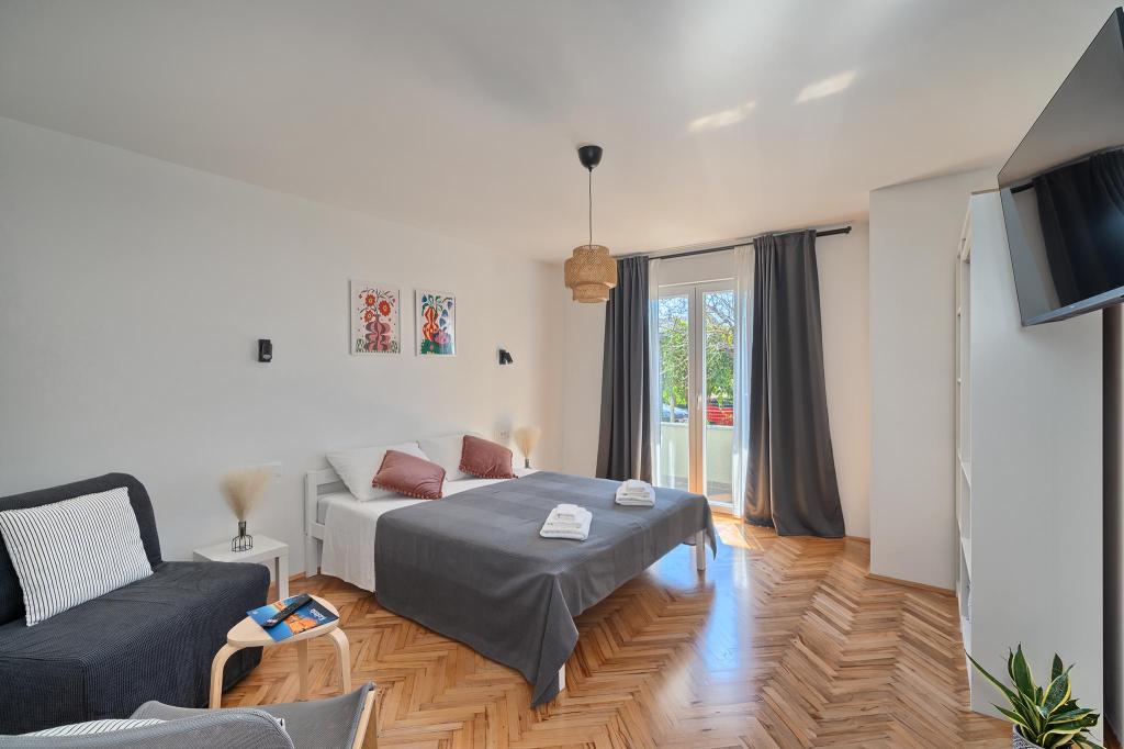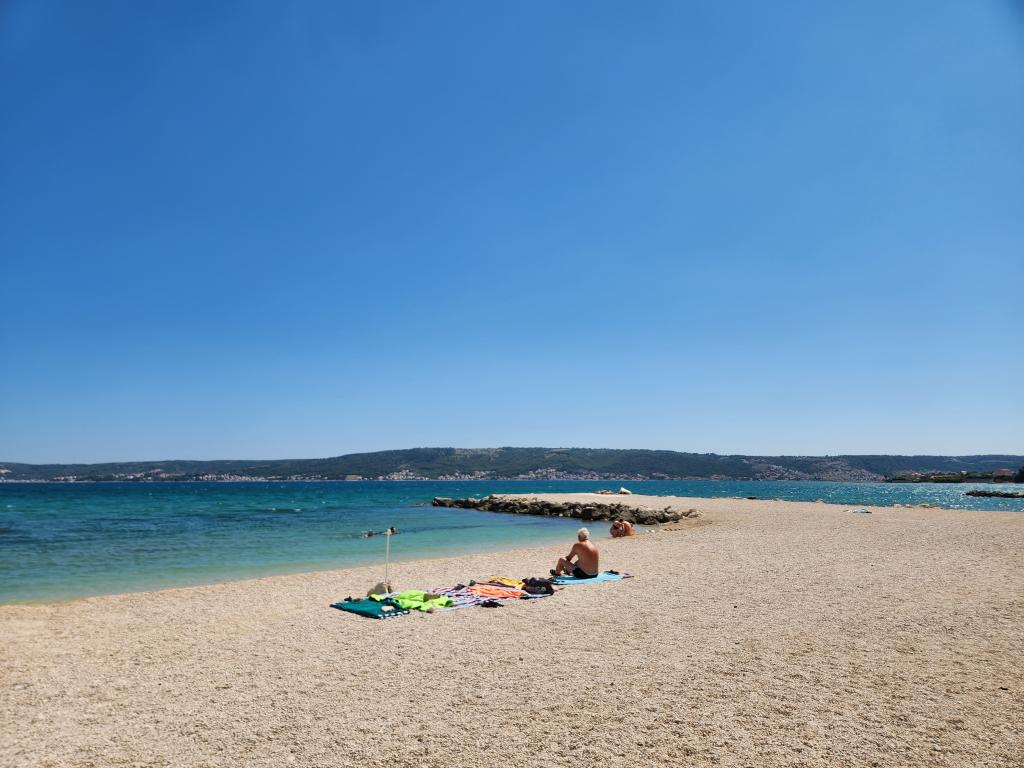 Just a 2-minute walk from the beach, our newly renovated two-bedroom apartment offers a perfect mix of comfort and convenience for your stay in Dalmatia. With modern amenities in a cozy setting, it’s an ideal base for beach lovers and explorers. The apartment’s location is close to shops, cafes, restaurants, pharmacies, and the airport ideal for a worry-free holiday. The main bedroom includes a queen-size bed, a single sofa bed, smart TV, and access to a private balcony with seating. The second bedroom features a double bed. Our kitchen is equipped with everything you need for home-cooked meals, including a stove, oven, and refrigerator, alongside a dining area Bathroom is stocked with essentials and towels. The apartment is equipped with Wi-Fi and air conditioning. Guests can enjoy an outdoor shared space with BBQ for outdoor dining. Free parking on premises.