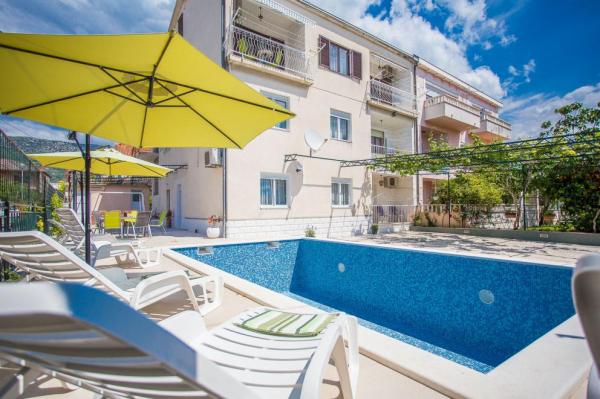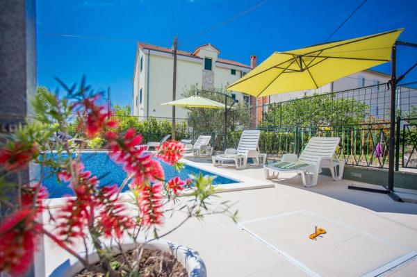Warm recommendation, especially if you have a small child or children. The yard is beautifully decorated, the pool is perfectly clean, the suites are equipped with everything you need for a stay, they all met us neat and clean. The hosts are warm, hearty and always ready to help. We stayed in an apartment overlooking the sea, a perfect place for drinking morning coffee. The sea is clean and the beaches are neat. The beachside environment is very nicely decorated. In the vicinity we discovered a couple of good restaurants (Ballet School, Holiday) with very good food and normal prices, close to shops, and neither Split nor Trogir are far away. This family is a real example of how to deal with tourism. Svaka pohvala !!! :)