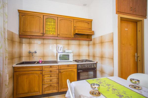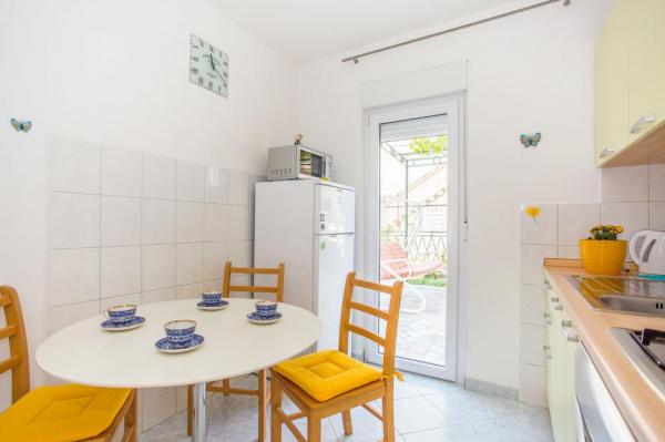 The apartments are located in in the center of Kastel Kambelovac between Split and Trogir. Our apartments have a great location because all services close such as shops, restaurants, beaches, bars ... You are you very close to many attractions and protected as n example tower Cambi, Diocletian's Palace (15 km). And most important of all is to note that we are in the most peaceful susjestvu and we have beautiful apartments with sea views as well as for nature lovers have a beautiful view of the garden. In our offer you can also incorporate a small cottage in which we have a fireplace and a kitchen in it you can continue socializing with friends and family. We have on site and an outdoor pool. The beach is 30 m Nearby 700 m have a lot of restaurants such as vacation, Laguna, ballet, Buza ... Nearby 500 m we have a lot of supermarkets such as: Ribola, Tomy, Konzum, Lidl. . Also the bus station is very close !!!