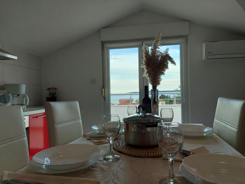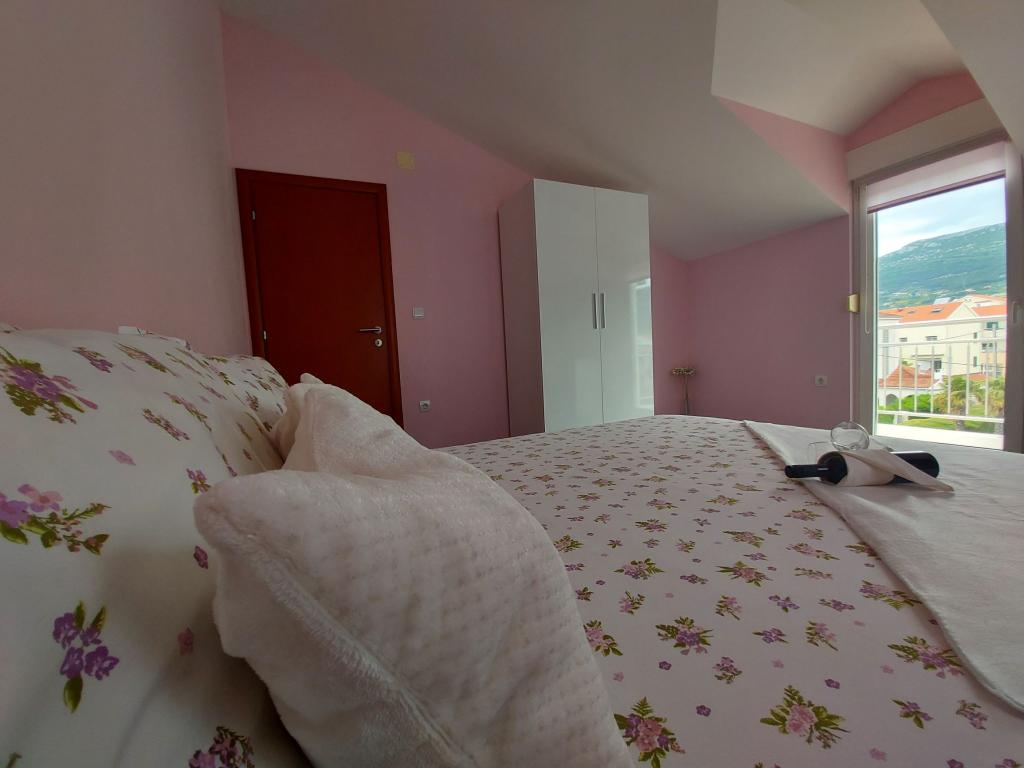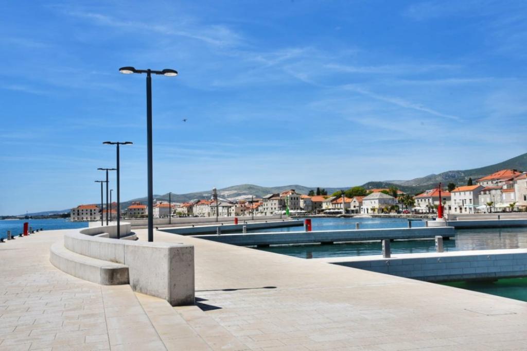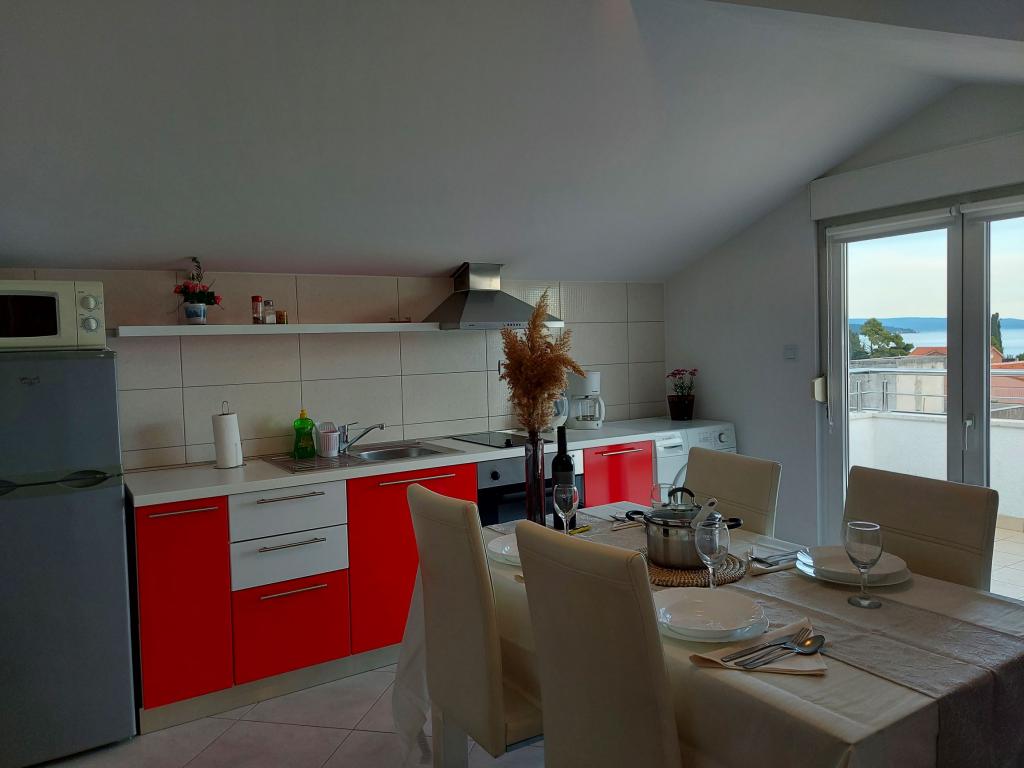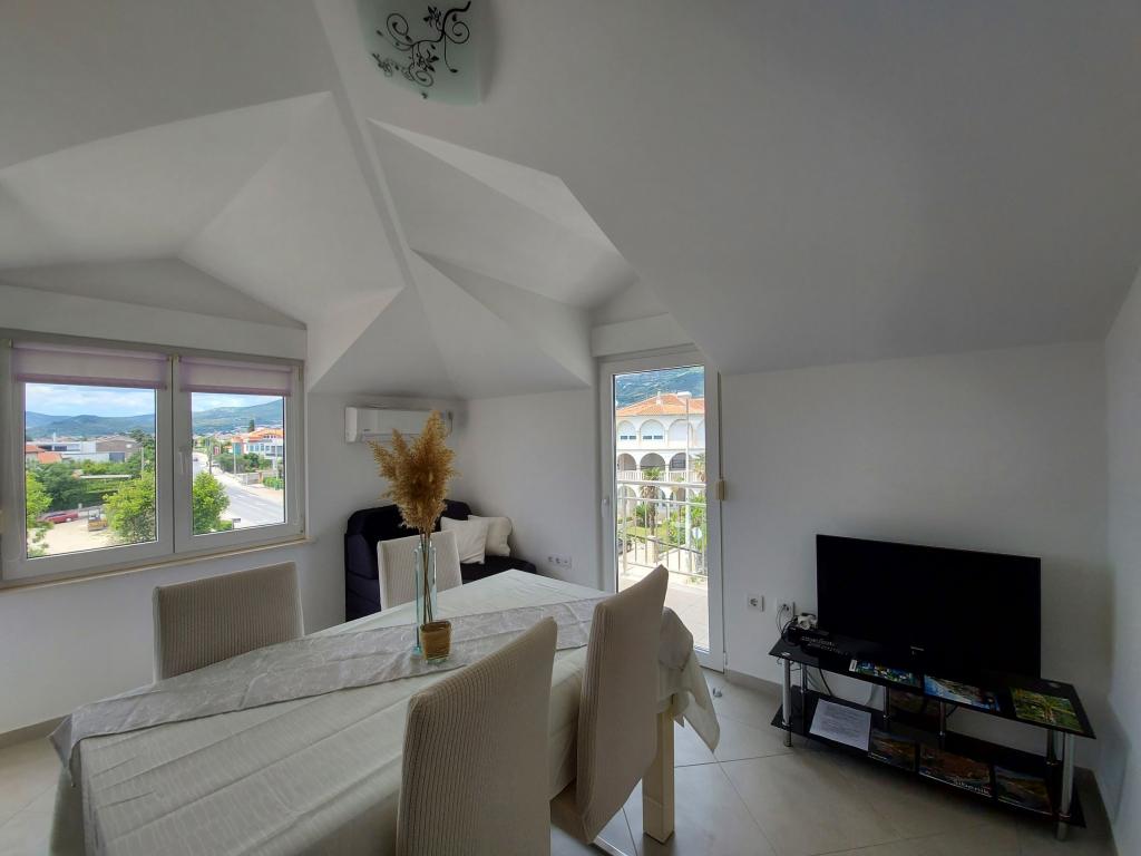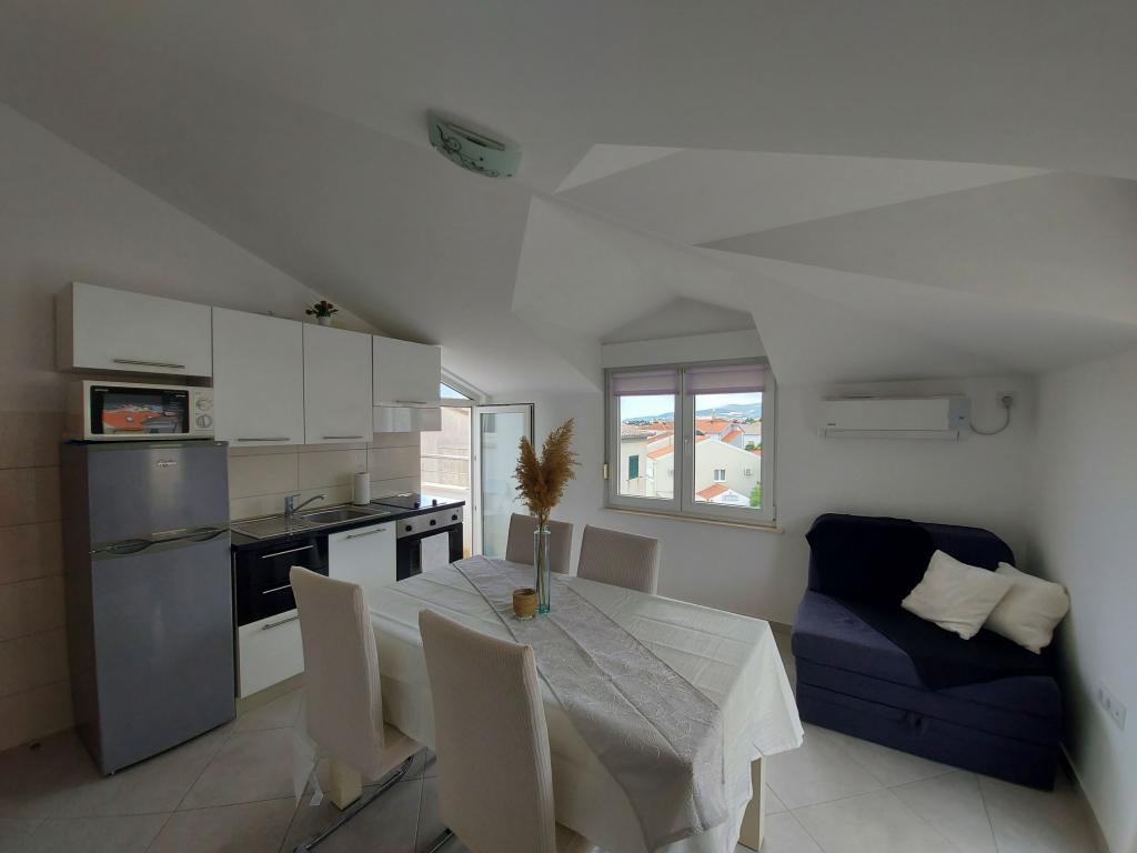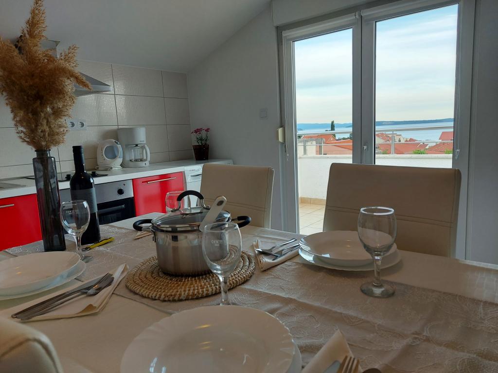 In the house are two apartments, evaluate apt. 1, which is perfect. It has two terraces, one with a sitting area overlooking the sea. The apartment is modern and clean. Air conditioning is not only in the kitchen, but if you leave the door to the room open, so it is enough. Free Wifi. The house stands on the village road, where traffic day and night, but our apartment was directed to the other side, so nothing to disturb us. Not far away is trade. Super is also a swimming pool with sun loungers and shower. The sea is about 200 m, but instead we went a little farther, there was a better entry into the water. The closer the beach were in a sea of larger stones. Otherwise, both pebble beaches. In the vicinity are several restaurants. Along the beach walk to the historic part of town, something for romantics. There are also shops, restaurants, bike rental. On a trip is a short walk to Split and Trogir. Close to Split airport, so planes flew over us, but that we are not even listening. Mr. owner Zoran is very friendly and helpful. Leave us very much. I think the apt. 1 deserves 4 stars. I like to recommend it to everyone :-)