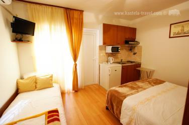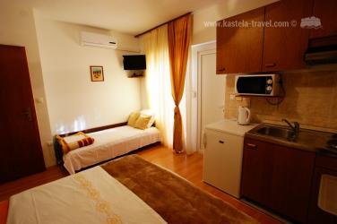 The house is located in Kastel Stafilic, the beach is 300 meters. The house has 4 apartments for 15 people, making it ideal for family holidays. The house is surrounded by greenery which provides shade for rest and relaxation. All guests can use the summer kitchen and outdoor grill.