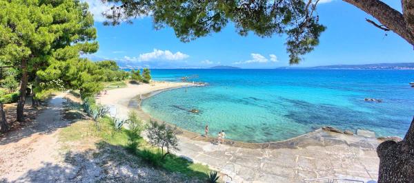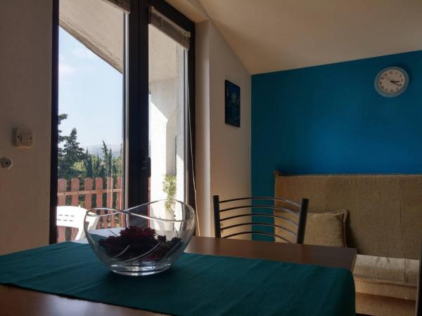 Fully furnished apartments in Kastel Stafilic 100 meters from the beach. The apartment consists of a bedroom with a double bed, a living room with sofa bed, bathroom, kitchen and terrace. The house has a parking lot. Bus station and restaurant are within 100 meters, and the shop is opposite the house. Basketball, football and tennis courts are 20 meters away.