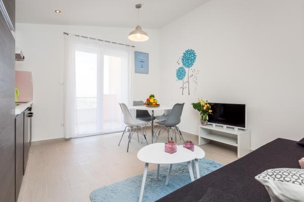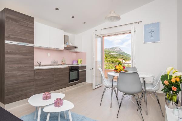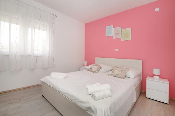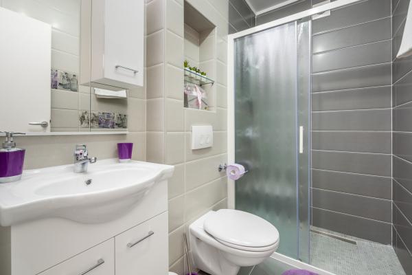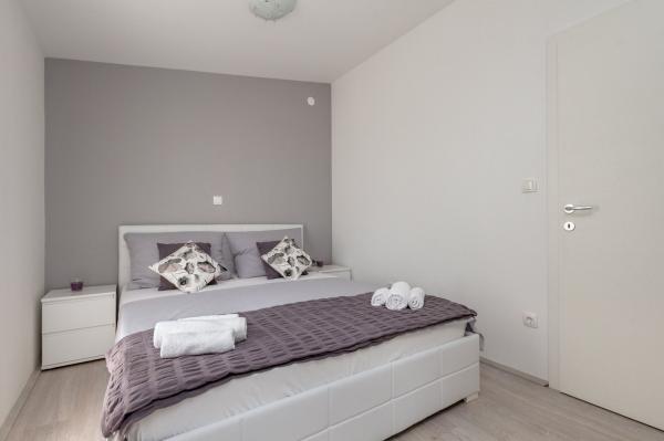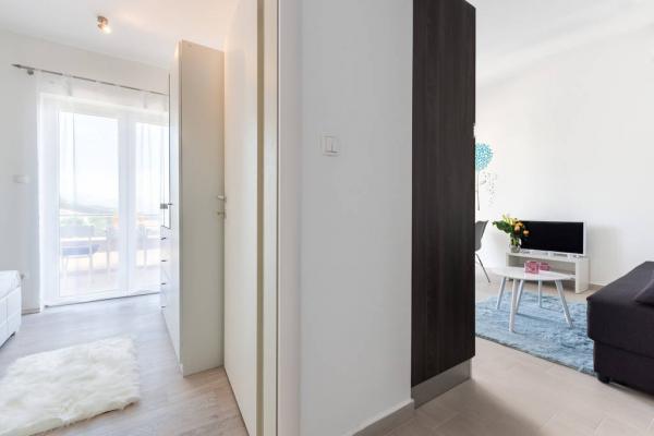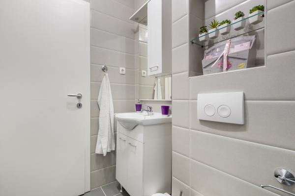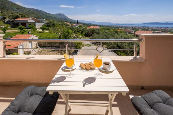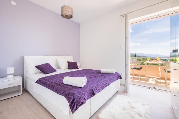 Brand new apartment located in Kastel Stari between two UNESCO protected city of Split and Trogir. Located on the top floor of the house (third) floor offers stunning panoramic views over looking Kastela bay, Split and islands of Brac and Hvar. The interior is stylishly designed and equipped. The spacious living room consists of a large sofa, a kitchen, a flat screen TV. The bathroom is modern equipped with everything you will need. The bedroom is spacious with a king size comfortable bed. Exterior of the house is big, green garden full of organic fruits and vegetables.