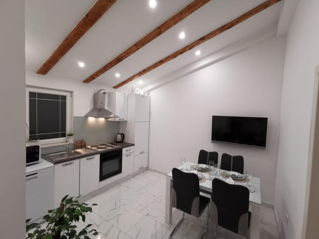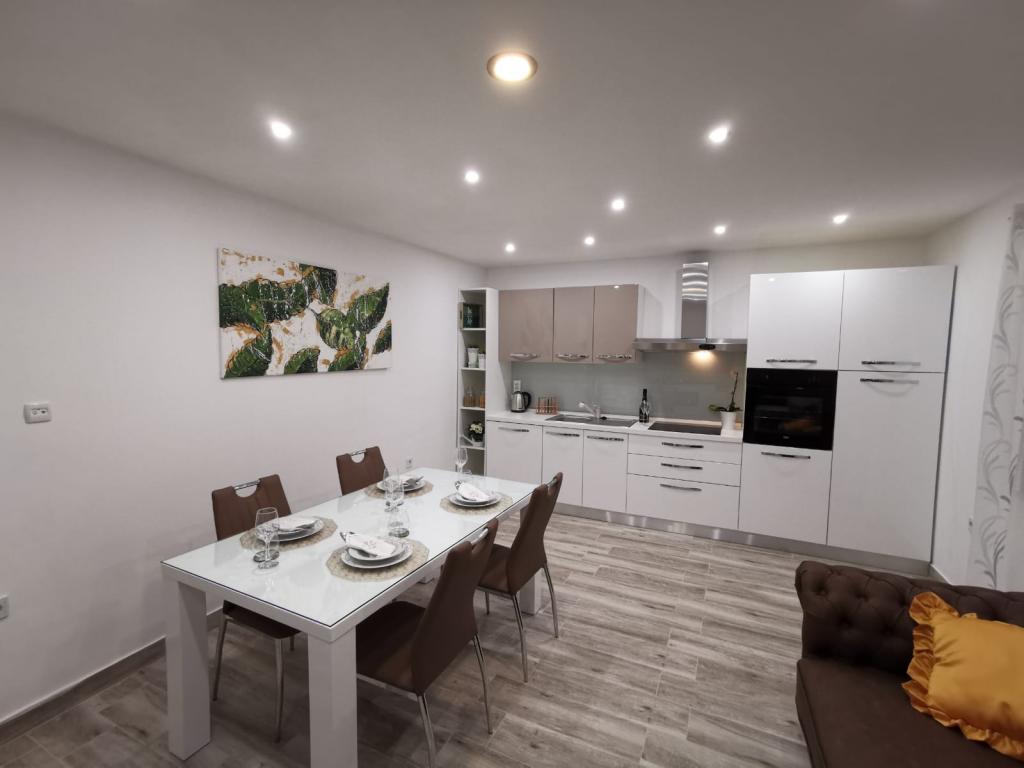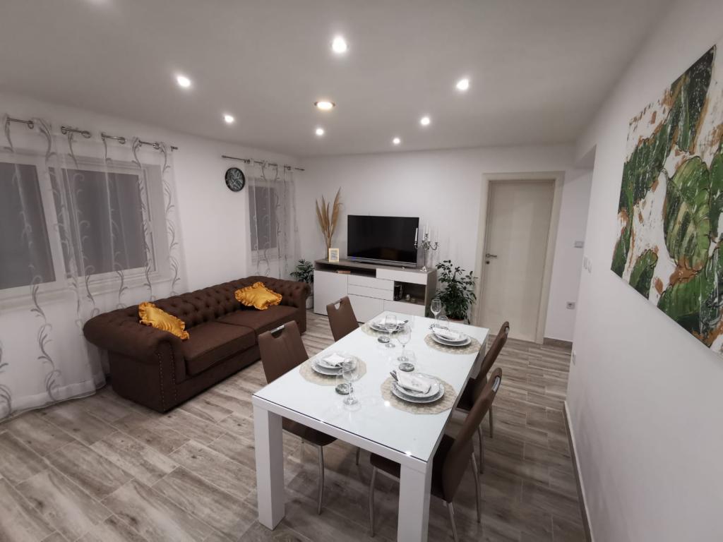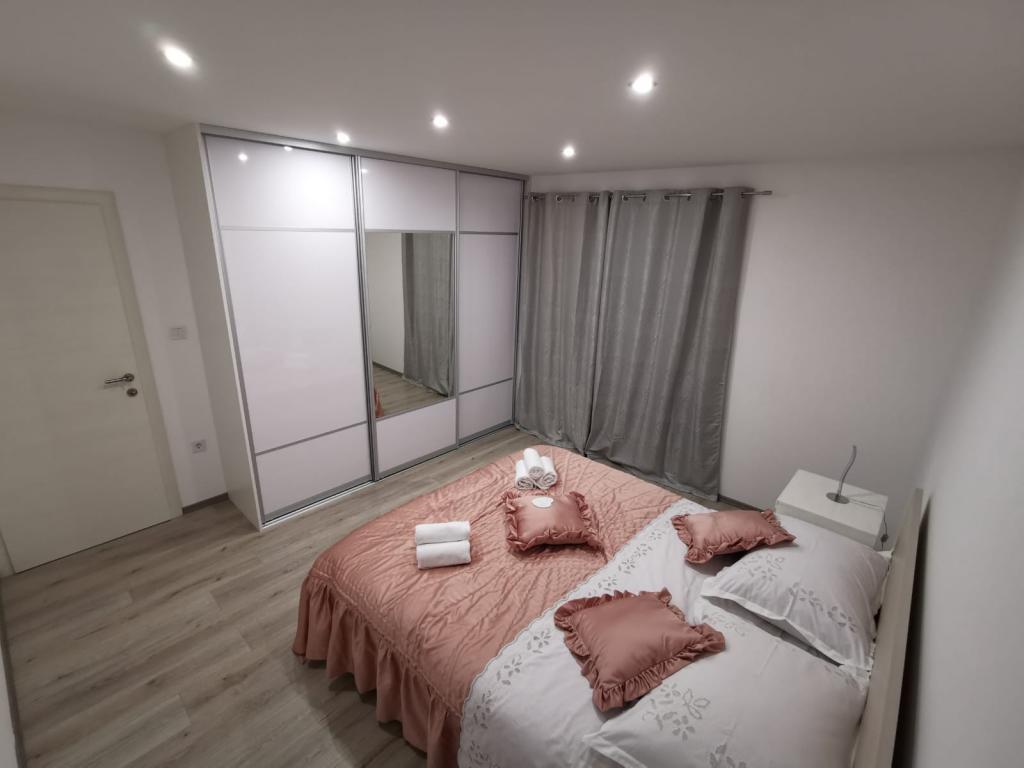 Modern completely renovated Apartments Pina are located in a family house, hidden from the main road but close enough to the largest city in Dalmatia and the city under the protection of UNESCO Trogir. We are located in Kastel Stari 2 km away from the airport. Guests have at their disposal 2 modern apartments. Distance from the beach is 500m, nearby there are supermarkets, cafes, parks, bakeries, restaurants, pharmacies and post office and bank. For each apartment there is a parking space, terrace and barbecue.