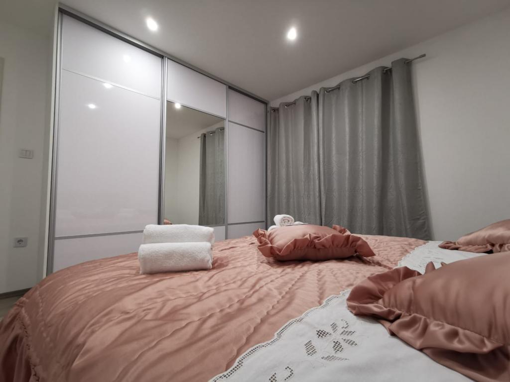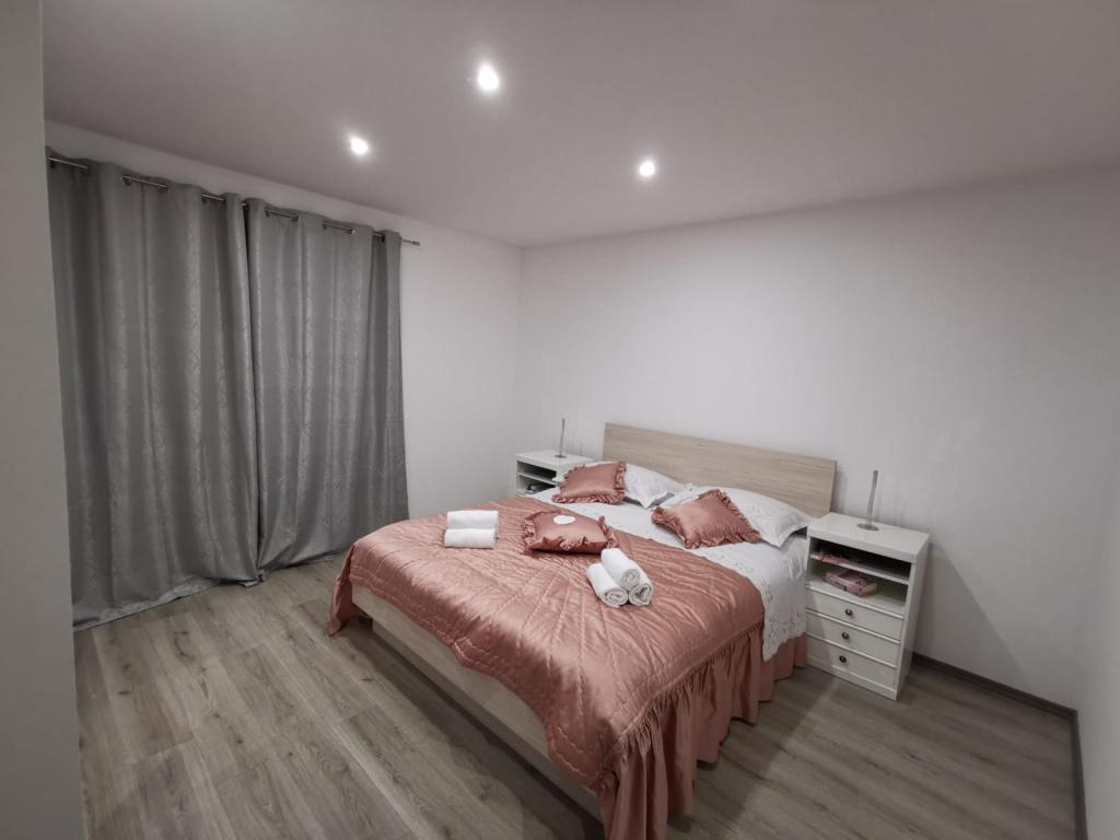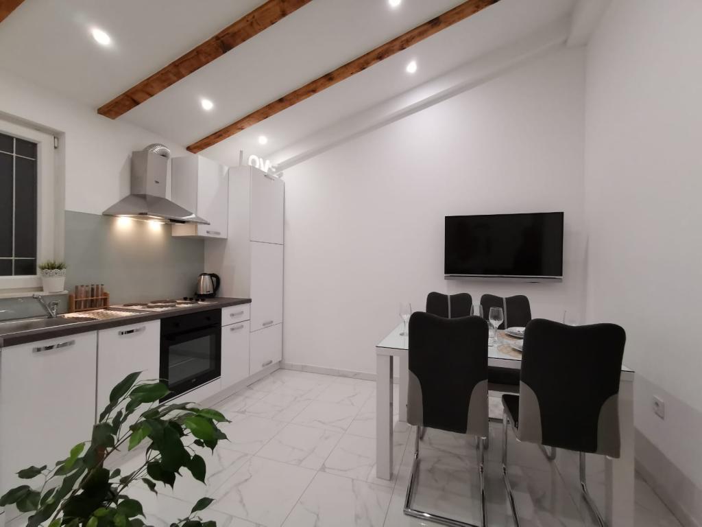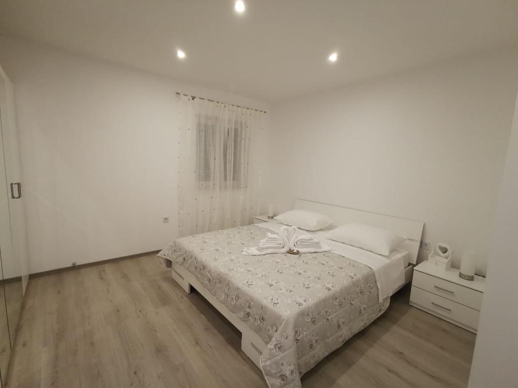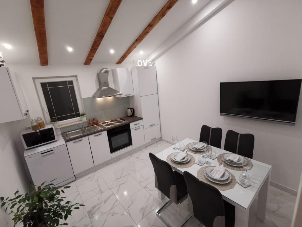 Modern completely renovated Apartments Pina are located in a family house, hidden from the main road but close enough to the largest city in Dalmatia and the city under the protection of UNESCO Trogir. We are located in Kastel Stari 2 km away from the airport. Guests have at their disposal 2 modern apartments. Distance from the beach is 500m, nearby there are supermarkets, cafes, parks, bakeries, restaurants, pharmacies and post office and bank. For each apartment there is a parking space, terrace and barbecue.