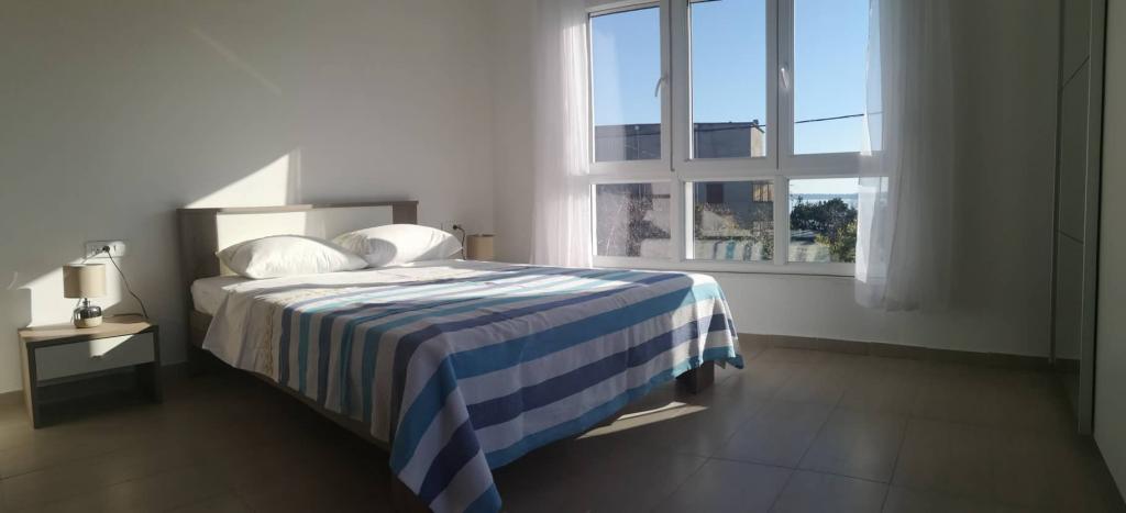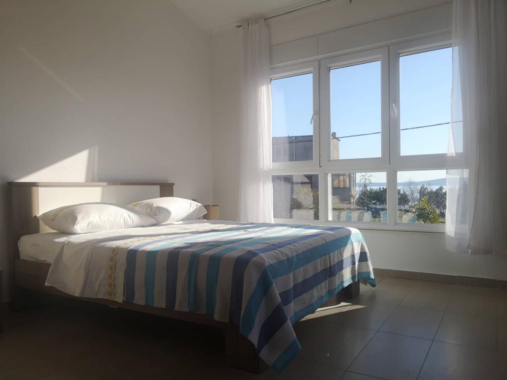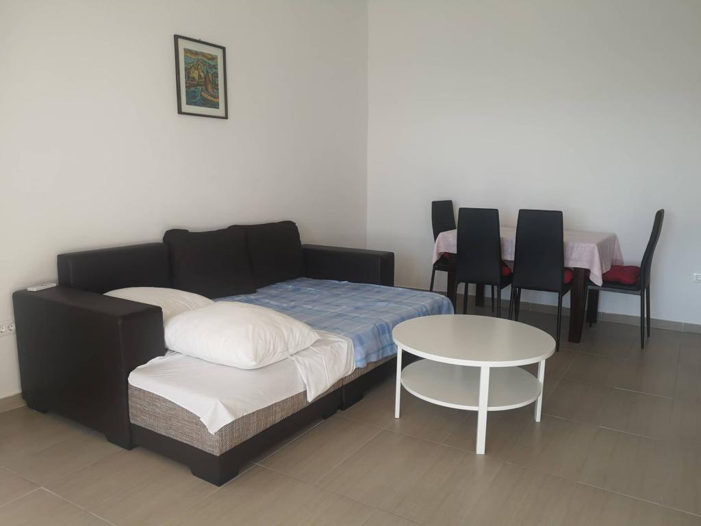 Sea Sunny Apartments are ideal for families with children or couples. Due to the perfect location it is the perfect choice for your vacation - only 30 m from the long sandy beach suitable for children, with the famous restaurant with traditional Dalmatian food and a cafe on the beach. Nearby is the city center, supermarkets, market with fresh vegetables and fruits and groceries, pharmacy, bus station, gas station, etc. One apartment can accommodate 4 people. Each apartment has one double bed and one sofa bed for two people. The apartments also have a living room with a seating area, a TV, air conditioning and Wi-Fi, a fully equipped kitchen and a bathroom with a shower. Outside the apartment there is a terrace and a seating area with a view of the mountain (mountain Kozjak). Guests have free use of everything the apartment contains, including free Wi-Fi, air conditioning and parking in front of the apartment.