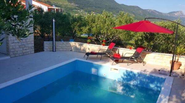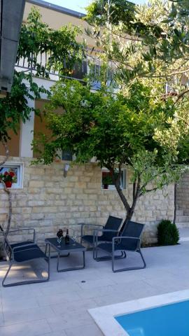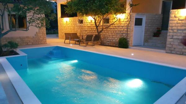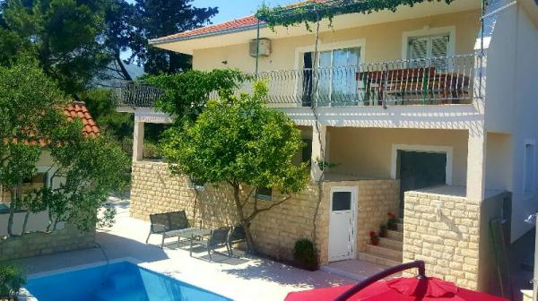 Fully furnished, the blue house with a swimming pool in the area of Rudine, Kastel Novi. The facility is located at the foot of Mount Kozjak, surrounded by greenery, offering a breathtaking view of the Kastela Bay, Split and the islands. A perfect oasis of tranquility to spend your holidays in a comfortable prostarnoj home, equipped swimming pool, a calm and pleasant nights, and yet close to all attractions. We are located 5 km from the airport, 15 km from Split and 8 km from Trogir. For 5-10 minutes by car you are on the beautiful beaches. For nature lovers, mountain walking and cycling, behind the house there are slopes of Mount Kozjak, as well as the beautiful resort of Biblical garden, which is how the name itself says a paradise on earth. The spacious apartment has 3 bedrooms, bathroom, toilet, kitchen, dining hall and living room, fully furnished. Terrace 30m2, with stunning views and shade, perfect for summer living. The yard has a lot of places to play, a large parking space for 4 cars, home for a barbecue, and a large olive tree