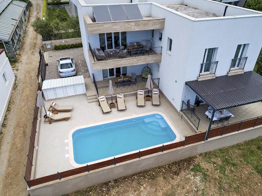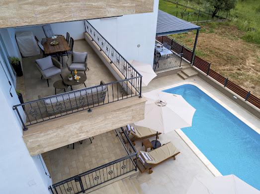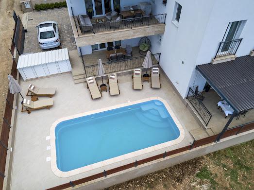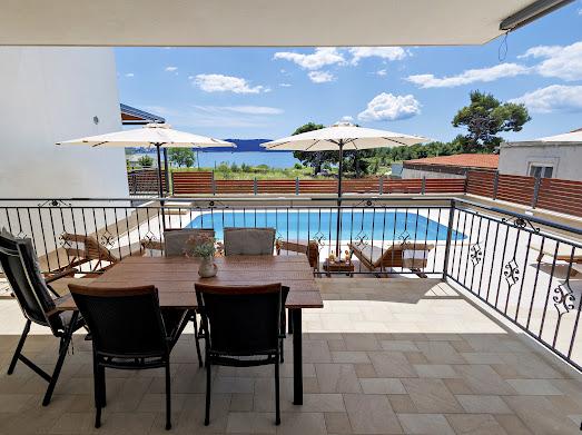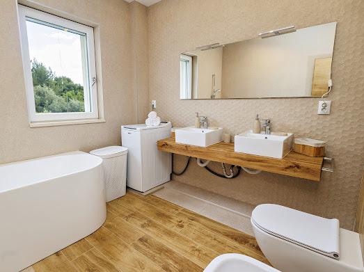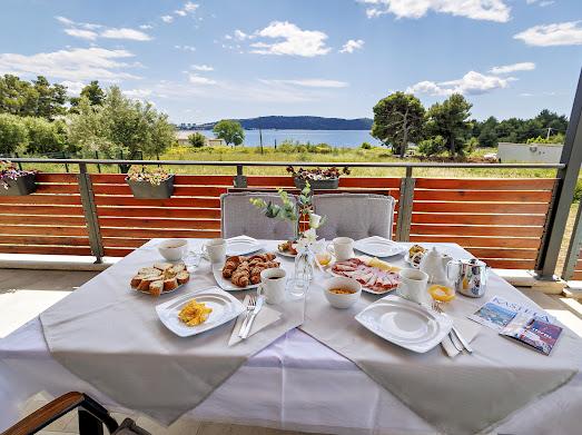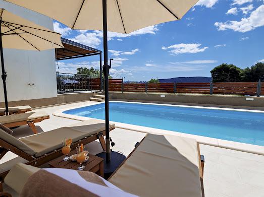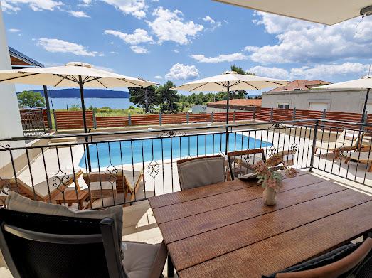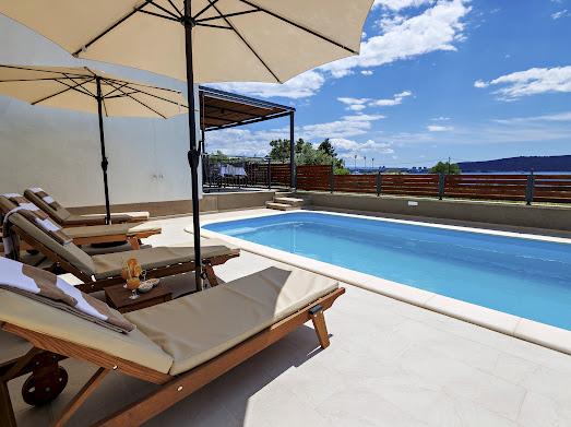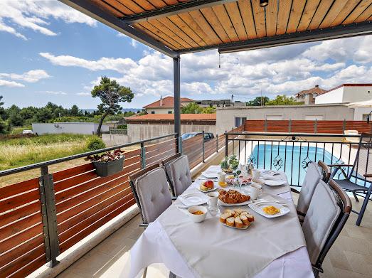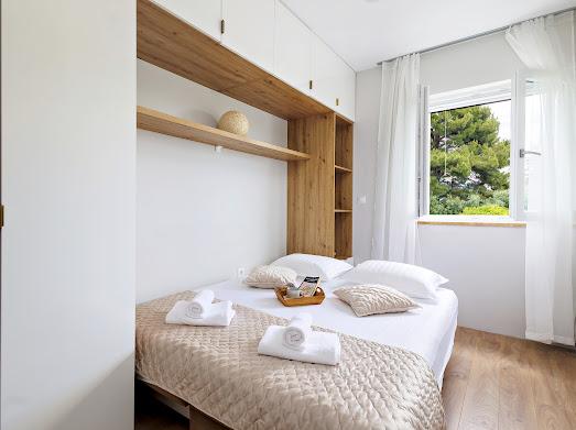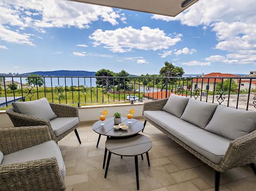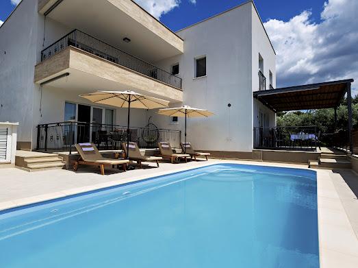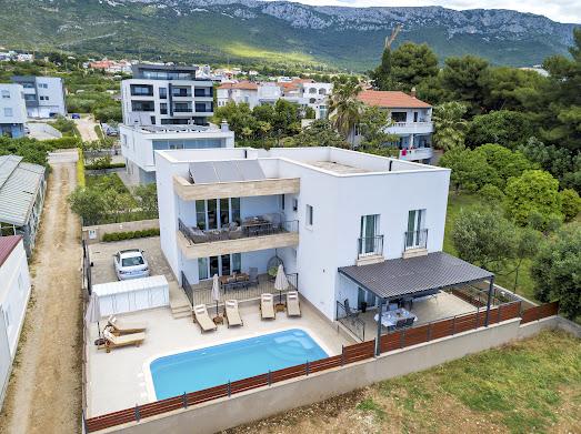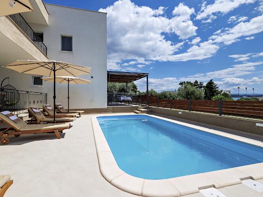 Apartments 3D are new luxury apartments with a swimming pool and breakfast included, equipped with everything you need for a relaxing holiday. We offer true peace and unforgettable vacation, surrounded by the sea, olive trees and mountains. The distance from the apartment to the beach is 150 meters, and from the sea 100 meters. From the southern terraces and the northern side there is a wide view of the sea towards the Kozjak mountain. The house is located in a quieter part of Kaštel Sućurac with minimal traffic and circulation. A truly peaceful and natural vacation that everyone needs during a fast-paced lifestyle. Spacious terraces and a beautiful swimming pool for relaxing with a fresh cup of coffee or a glass of local wine. With partners we can organize excursions to the surrounding islands of Hvar, Brač and Vis, the Krka and Plitvice national parks and the nearby cities of Split and Trogir. The nearest restaurant and beach bar are 150 meters away, offering local food and cakes.