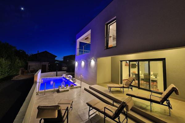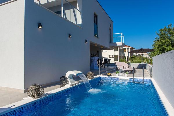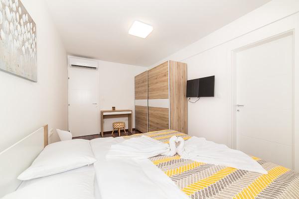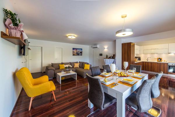 Fully equipped and modern apartments in the Villa Castelli, located in Kastel Novi, 500 meters from the sea; The facility is located 3 km from Trogir and 15 km from Split and 2 km from erodroma. Guests can enjoy the 130m2 of apartments and a swimming pool and a terrace in front of the Villa,