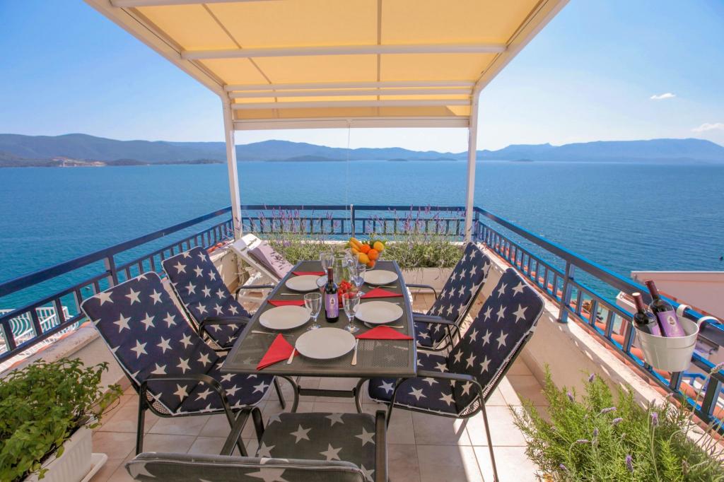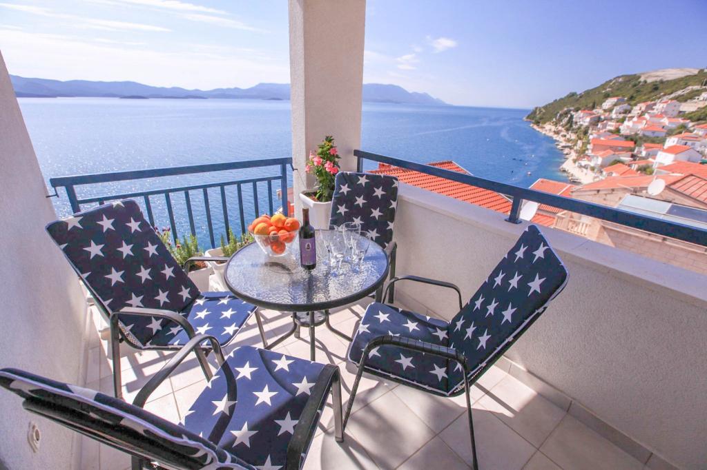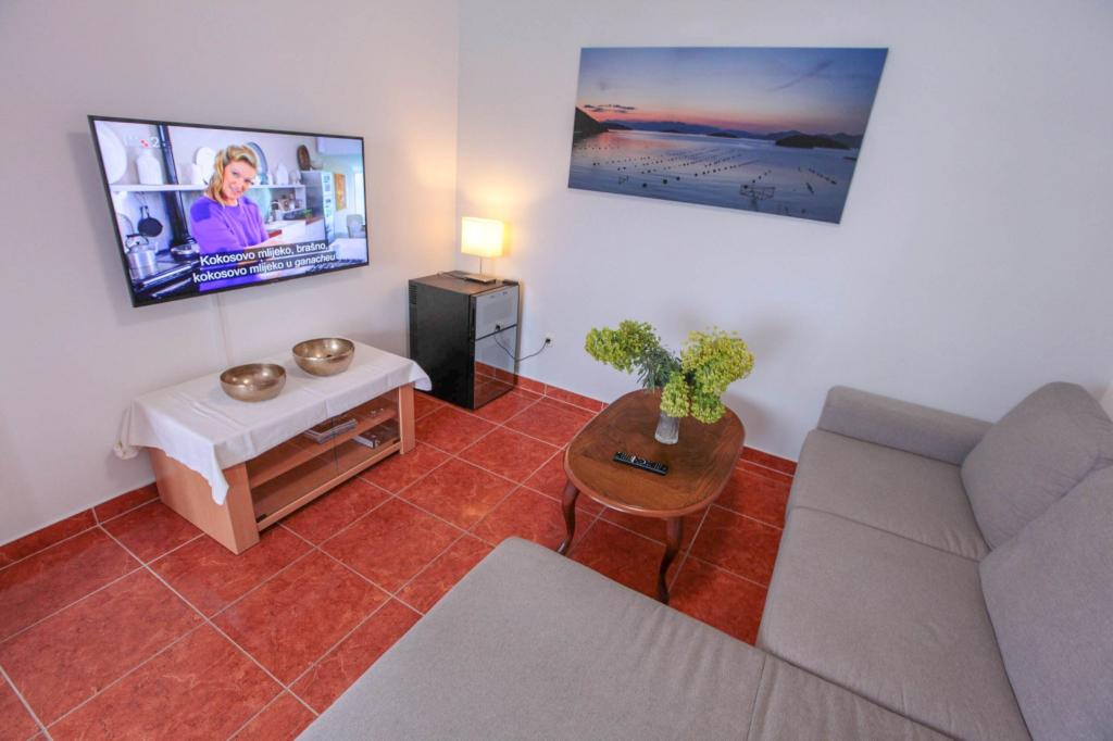 Apartment Empire additionally offers you luxury furniture, a unique view from three terraces to the sea and three small islands near the Peljesac peninsula and the possibility of tasting the specialties of Dalmatian cuisine. It is located in a small area of Komarna in southern Dalmatia, 70 km from the true pearl of the Adriatic Sea - Dubrovnik. Komarna is an ideal place for very interesting trips by car and boat. Dubrovnik, beautiful places on the Pelješac peninsula, Orebić, Korčula, tasting oysters and mussels, and tasting excellent wines in famous wineries. Also very interesting is the photo safari in the Neretva Valley and the autumn collection of mandarins and figs. A big advantage is the proximity of the Bosnian resort of Neum (10km), where you can buy groceries and fuel much cheaper than in Croatia. The whole apartment is newly equipped in 2019 (kitchen, refrigerator, furniture, mattress, washing machine, 4K TV, LED lights) The apartment is ideal for a group of friends, can accommodate up to 9 guests.