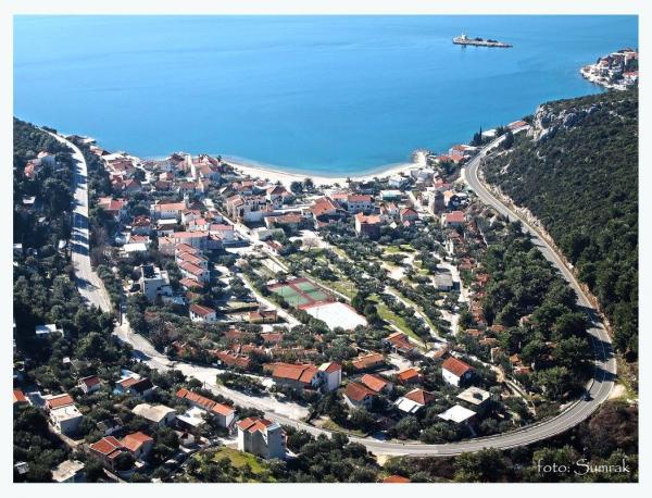 The facility is newly built, located twenty meters from the pebble beach with crystal clear sea. The apartments are fully equipped with air conditioning, satellite TV, internet access and each has a large sea-facing terrace and parking for your car. In the courtyard of the building there is a large fireplace where we prepare homemade specialties for our guests. For our guests we organize excursions by our boat to intact nature parts. The outstanding prices are final without your extra costs on parking, air conditioning, internet, tourist tax ... For larger groups we have an extra discount !!