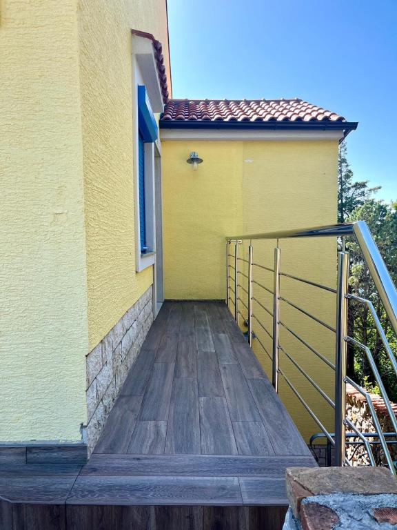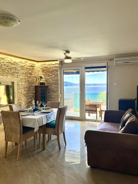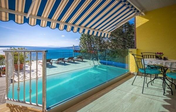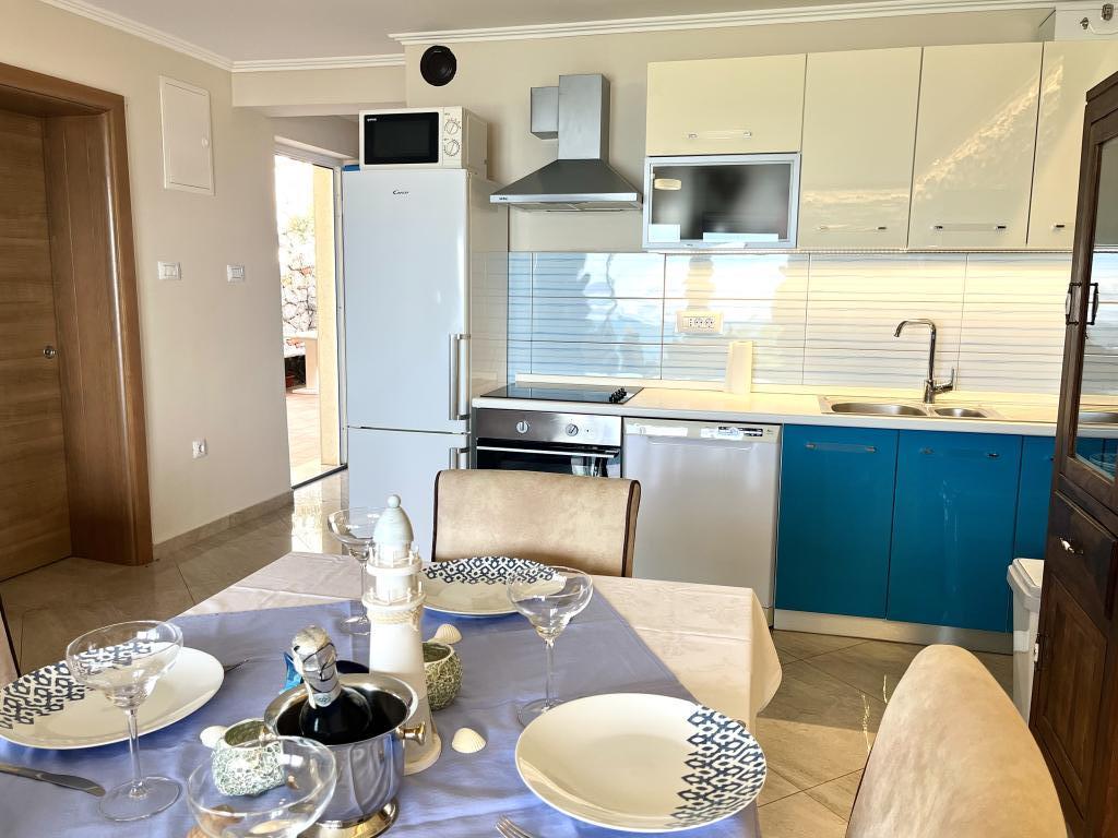 The apartment is located on the ground floor of a family house in the quiet, seaside, fishing village of Klenovica. Modern and richly equipped to high standards with its own outdoor pool, which is used exclusively by the guests of this apartment. In addition to the pool, the apartment has two terraces; one large terrace has a panoramic view of the sea, and the second, smaller terrace has a barbecue. On both terraces you have peace and privacy. The apartment has two parking spaces. Apartment accommodation is advantageous if you want to visit national parks or nearby islands, for example Krk, Lošinj, Rab or Cres, and for the same there are organized tourist tours by boat from the town center. Up to two pets are allowed in the apartment. The dog beach is about 7 minutes away. drive from the apartment. The apartment is well fenced on both terraces, which is convenient for small children and pets. The apartment on the first floor has 4 beds, modern and well equipped. There is no use of the swimming pool except when there is a group of the same family or friends. Balcony, parking, sea view, air conditioning, int
