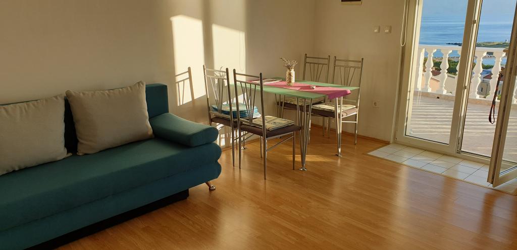 The apartments are located in a small and quiet fishing village of Klenovica, an ideal place to spend a relaxing holiday with your family. All apartments are equipped with air conditioning, a private kitchen, a bathroom and large terraces with a beautiful sea view. The apartments are only a 2-3 minute walk from the main beach. The beach is mostly pebble, but there are also rocks and concrete shores. . Near the apartments there are shops, a post office, a cafe, restaurants with fish specialties, a pizzeria, a playground. . There is free private parking within the building!