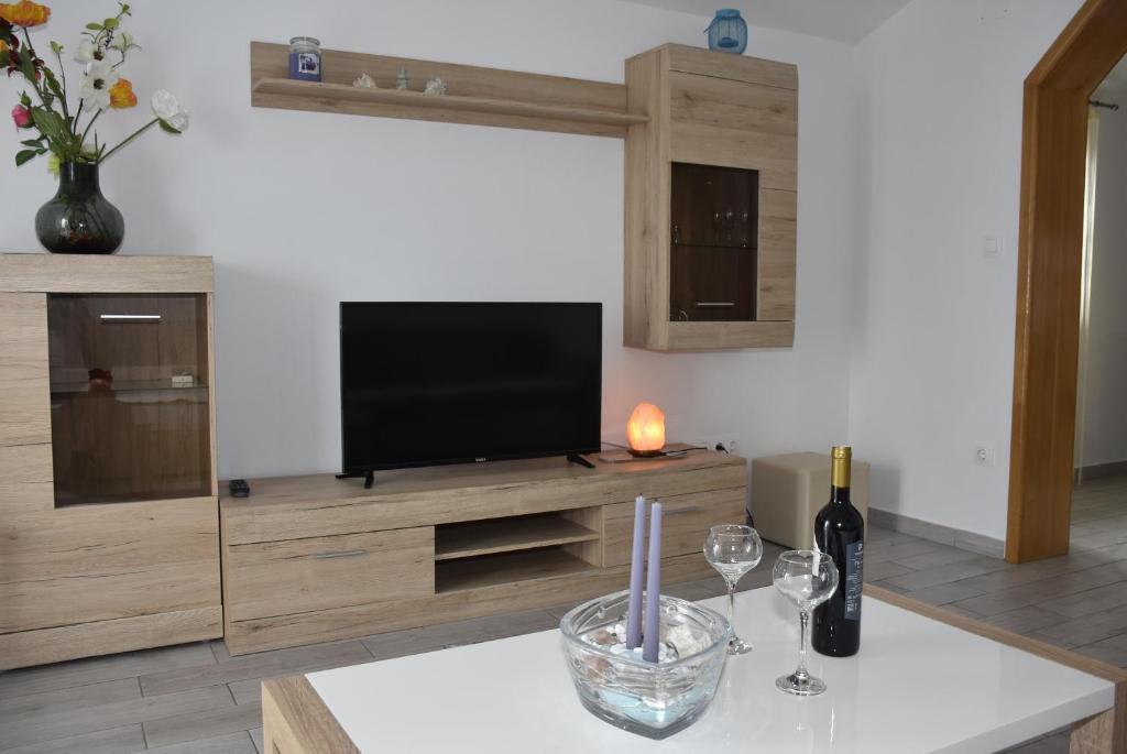 Apartments Mira are fully and modernly equipped, and are located only 200m from the sea, or a few minutes from the beach, overlooking the sea. Large fenced yard, spacious terraces and proximity to the sea make this place ideal for family vacations, especially with children, but also all others who want a peaceful vacation. At only 400m there is a shop, a walk along the beach offers a variety of restaurants. For all who still want fun, Novi Vinodolski is only 9km away, Crikvenica 18km, Rijeka 50km. Within the building are 2 apartments, each of 50m2. Both apartments have a balcony overlooking the sea and are equipped with washing machine, air conditioning, TV, SAT, WiFi.