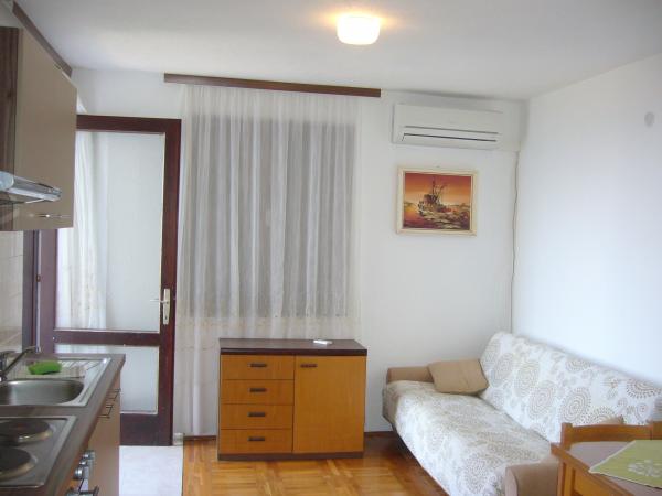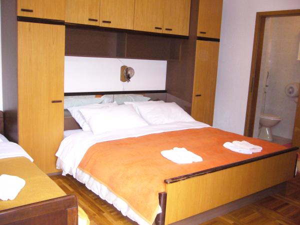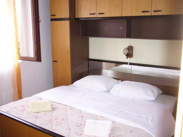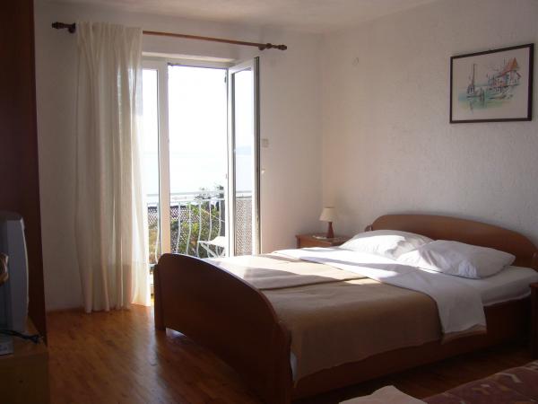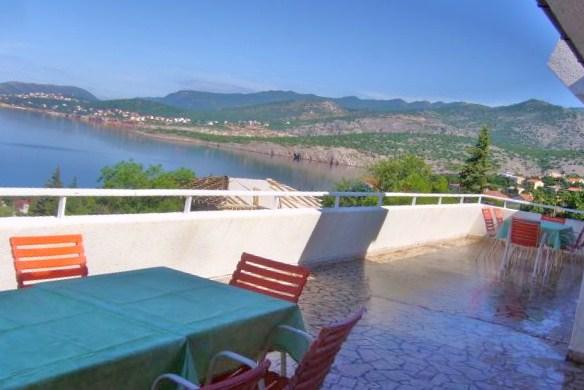 Apartment C is located on the third floor (attic). It is an apartment for 6 1 people with one bedroom 2 1 with bathroom and air conditioning and two double bedrooms with air conditioning, bathroom, satellite TV, a kitchen, a large terrace overlooking the sea. Within the building there is a restaurant serving daily fresh fish caught by the owner. It is possible for a surcharge have breakfast and half board.