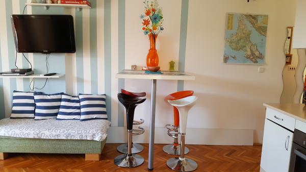 I would like to express my satisfaction with the apartments "ZID". The apartments are clean and beautifully stained with a beautiful view and in a quiet environment. The pebbly beach separates you from 50m long pine trees. The praise is also the fact that the owners are friendly and what we agreed on was exactly what is not always the case with other providers. Next year we will definitely come again.