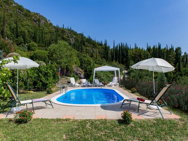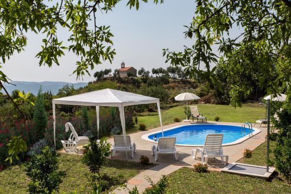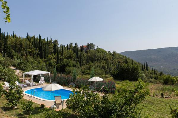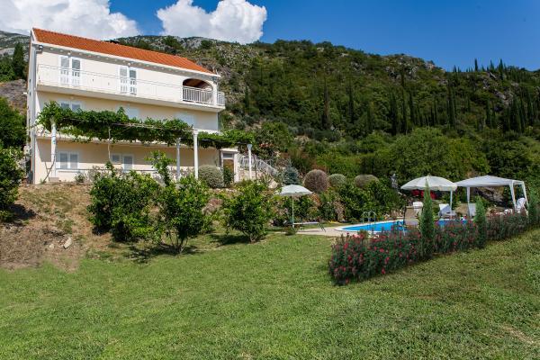 Villa wellhead located in Konavle, 32 km away from Dubrovnik and 16 from the airport, close to the border with Montenegro. It is located in the quiet environment of the garden of 5000m2. It is surrounded by greenery and fresh water springs that flow near the villa. It is ideal for those seeking a quiet vacation. Guests can use a garden with a swimming pool, barbecue and surrounding terraces. Owner offers free panoramic tour of Konavle and enrollment places. We offer our guests accommodation of 220m2 consisting of 5 bedrooms, living room, kitchen, 3 bathrooms, laundry and storage room for luggage and interior terrace, and outdoor terraces.