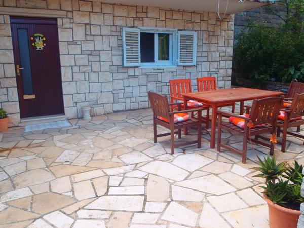 Apartment Fabris (80 m2) is located in Korcula town on the peacefull and quiet environment just a few hundred meters from the Korcula old town. It consist of 2 bedrooms with a double bed and with a separated living room, kitchen with dining room, one bathroom with bathtub and terrace with a seaview. The apartment has a beautiful view on the Pelješac channel. Free parking place near the apartment. Distance to the city center, harbour, shops and bus station is approx 5 minutes walking. Nearest beach (pebbly) is approx 100 meters from the apartment. Additional equipment: Cable TV, radio-CD player, dishwasher, toaster, microwave, Internet wi-fi
