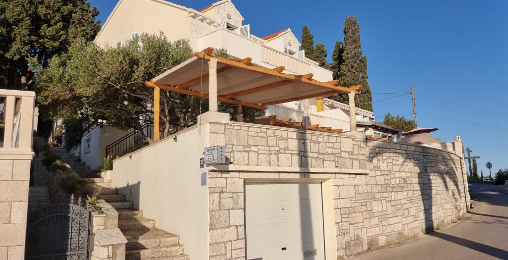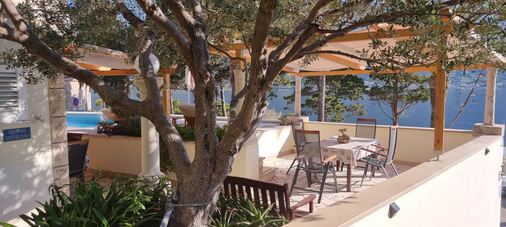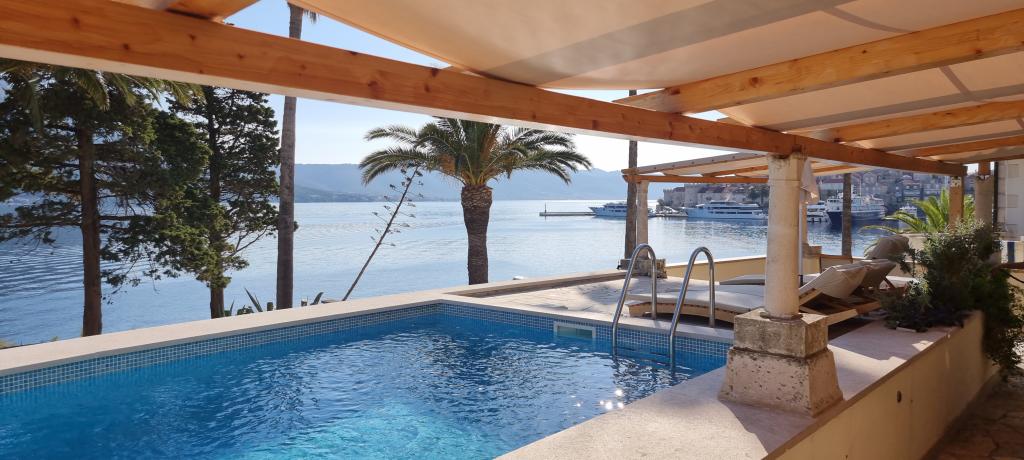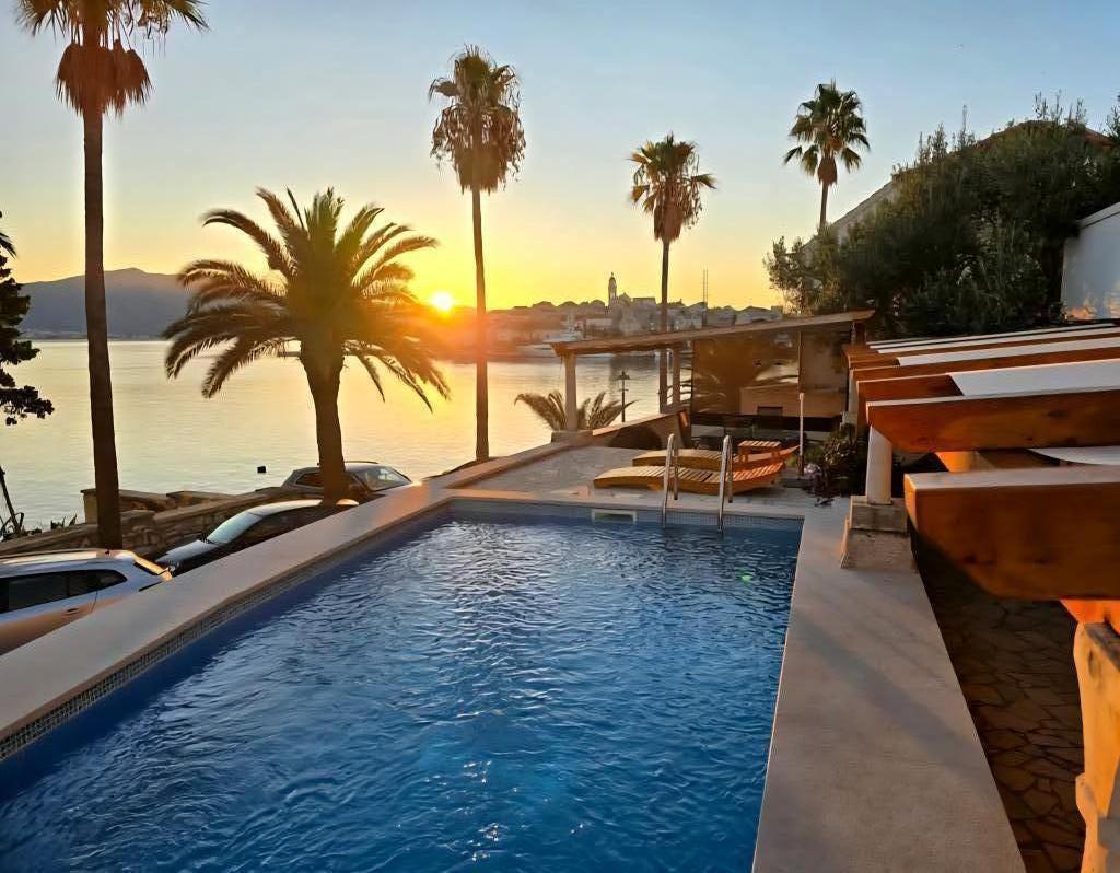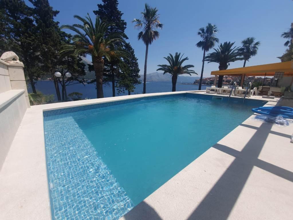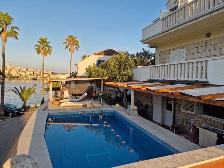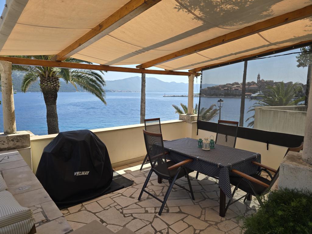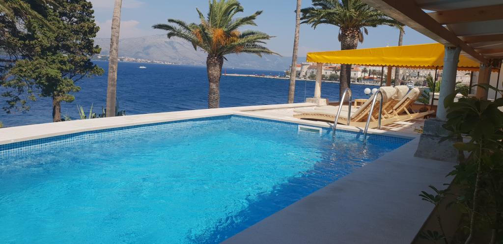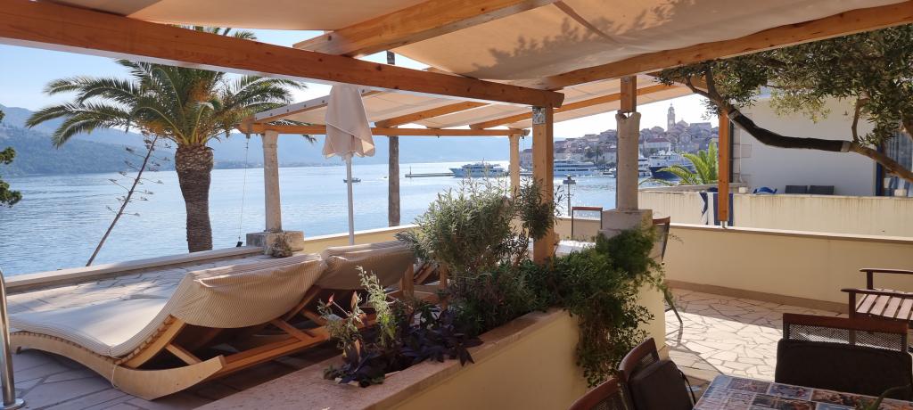 Apartment ID 759 has 83 m2. Luxuriously furnished and located in a beautiful part of the town of Korcula by the sea. The apartment has its own swimming pool and two large terraces and a sunbathing terrace. The apartment has absolutely everything you need for a vacation. Two air conditioning units, a large bathroom, two TVs, a nice comfortable space, two bedrooms and you have your own parking space for your vehicle. You are literally 5 minutes walk from the city center and 2 minutes from the beach. Barbecue on the terrace for your gastronomic pleasure. The apartment has a washing machine and dryer, dishwasher, two coffee machines, toasters, juice makers, etc. Fully and modernly equipped apartments in a quiet area of the town of Korcula, located first row to the sea; The facility is located 5 minutes walk from the city center and the beach and parking are right in front. Apartments and rooms ID 760 and ID 761 and rooms ID 5589 and ID 5599 are luxurious. The terrace at the back is also covered with a pergola and canvas. You have your own parking lot.