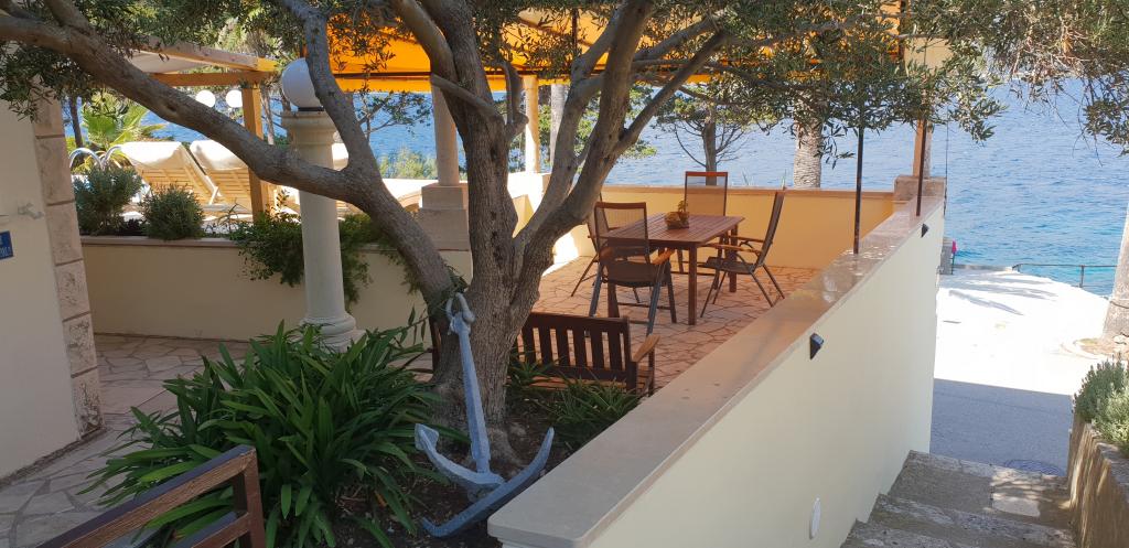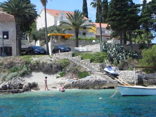 We had a wonderful stay at apartments Medmar on Korcula. We traveled with another couple and had the two upstairs apartments with a balcony facing the sea and old town. The location is perfect. Less than a 5 minute walk from old town so it's easy to walk back and forth. There is a rocky swim area with steps down to the sea literally across the small street about 25 feet from the apartment. I would find it hard to find a better location. Along with the sea view balcony, there is a very spacious back patio surrounded by fruit trees where we enjoyed picnic lunches. The apartments were very clean and had all the amenities we needed. Nice small kitchen with every utensil and appliance you'd need. I would highly recommend these apartments to anyone. As an added bonus, Mrs. Marovic is a wonderful hostess. She invited us in to her apartment below to visit and have a toast of her homemade orange liquer. It certainly added to our fantastic experience on Korcula island. We hope to be back someday soon.