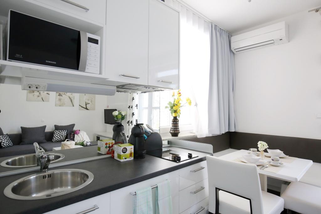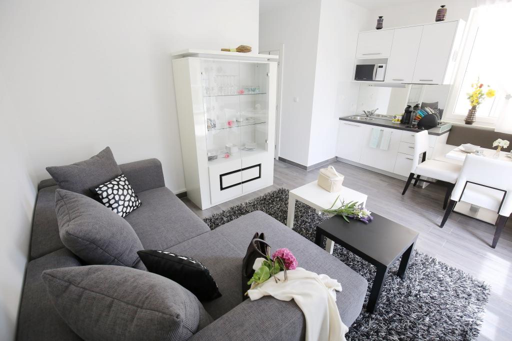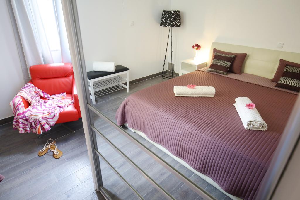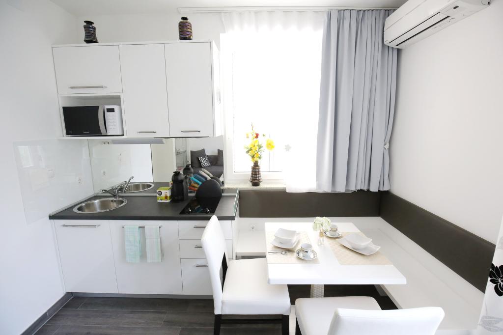 The facility Kožino Nicole Design Apartments is located in Kožino, near the city of Zadar, and the surrounding towns of Petrčane, Nin, Zaton, Vir. It consists of two apartments: 1. apartment on the ground floor with its own parking space in the yard, customized entrance and partial sea view 2. apartment on the first floor with a terrace and a view of the sea, the apartment has one parking space in the building's yard with a security yard gate Both The apartments are modernly equipped with everything necessary for a vacation and are located 15 m from the sea. All units have 2 bedrooms, bathroom, living room, kitchen with dishwasher, microwave or electric oven, safe, TV flat screen with satellite channels, iron, free WiFi and seating area with furniture. The units also include a fully equipped private bathroom with a shower and a hair dryer, as well as a washing machine. The Santorini Lounge Bar & Restaurant is located near the facility. There are 2 shops, a pharmacy and a health facility at a distance of 1 km.