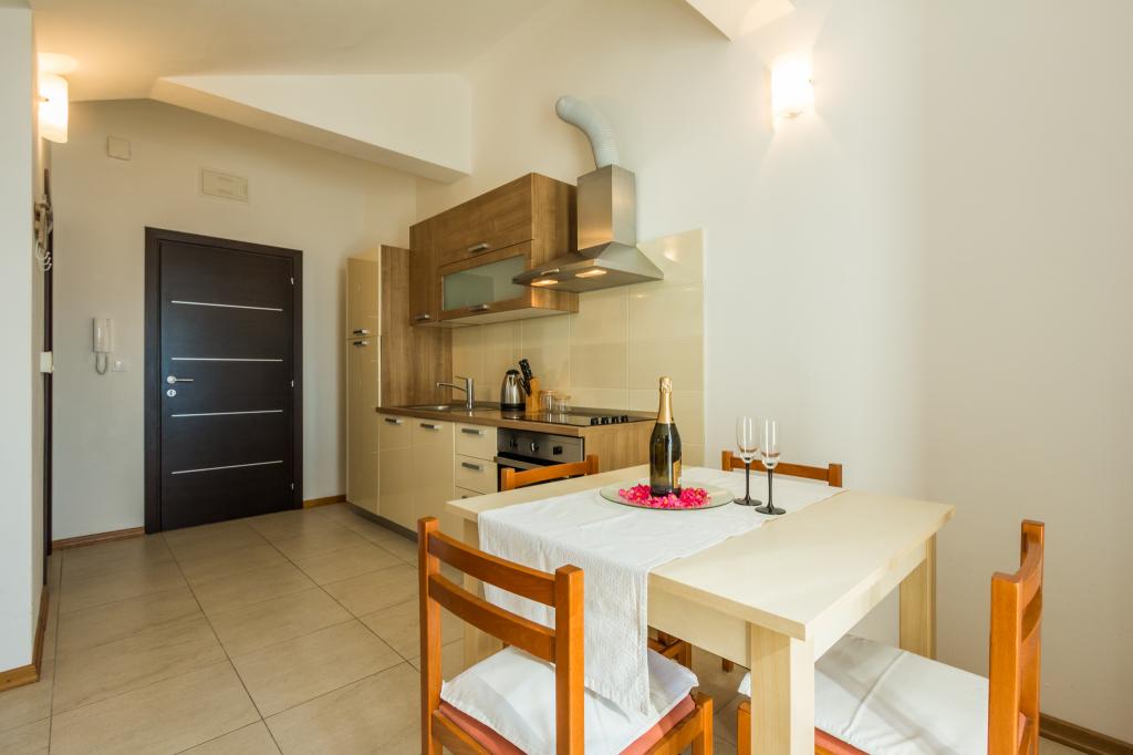 We are with the apartment and the beach very satisfied, because it is suitable for families who need a quiet and peaceful vacation. The store is nearby, close to the beach but it is suitable for children. House, apartment is arranged as shown in the illustrations, the owners are very friendly. There is also a restaurant. We recommend.