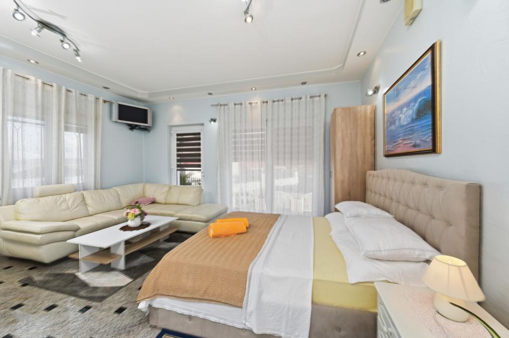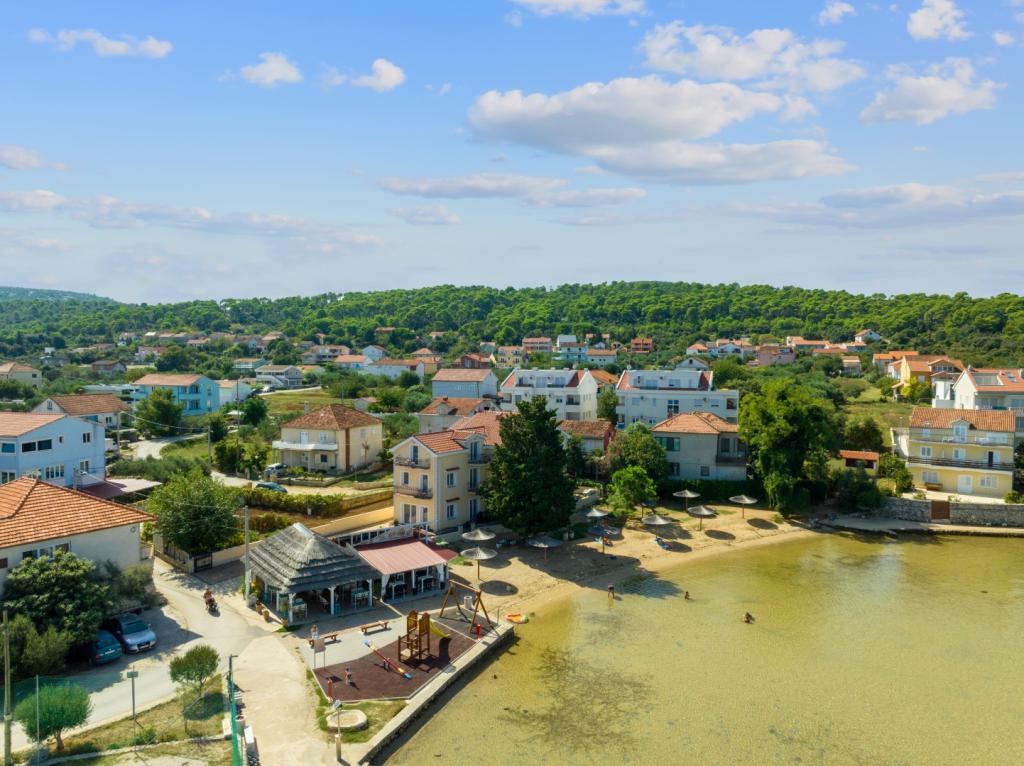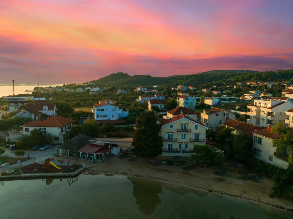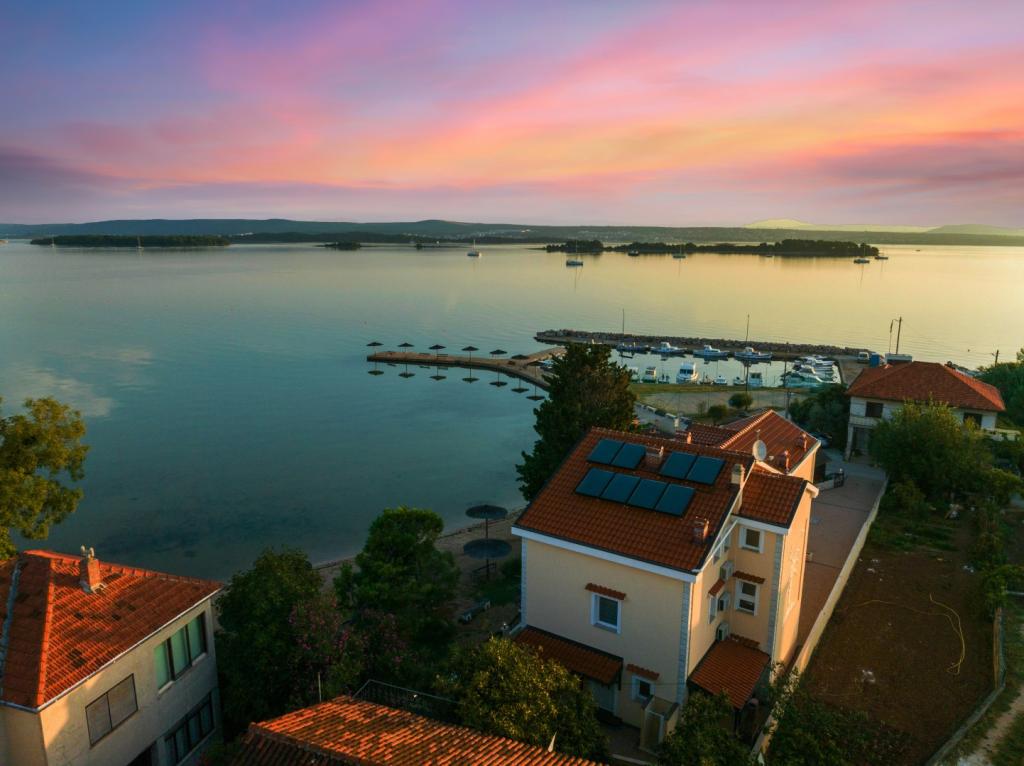 The villa is situated in a beautiful location on the sandy beach overlooking the Pazmanski canal.