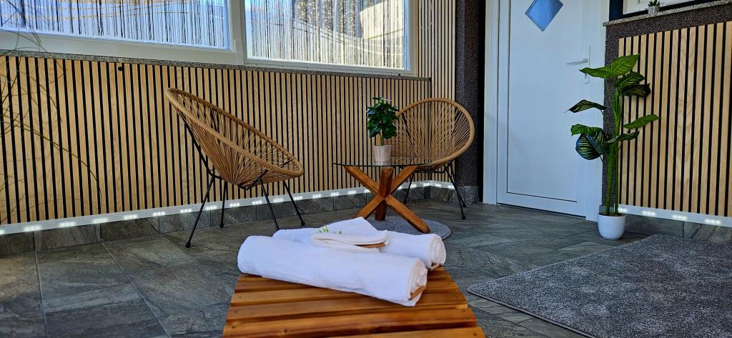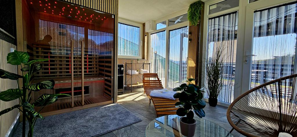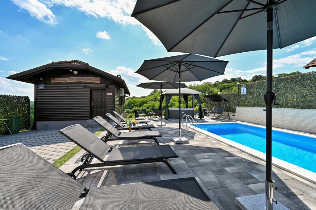 - Three-star holiday house in a quiet part of Croatian Zagorje. - Private parking - Large terrace: pool now with automatic dosing of pH and chlorine for impeccably clean and healthy water, spa/jacuzzi for 5 people - Terrace equipped with 5 sunbeds, garden seating set, bench, outdoor solar shower, umbrellas, garden swing for 3 people - Upper part of the house: dining room, kitchen, bar, TV, sofa bed, fridge, washing machine, bedroom double bed with TV, wardrobes, bathroom / toilet, with a beautiful view - Lower part: terrace with a beautiful view , table and chairs for 8 people, grill, room bed, wardrobes, bedroom double bed with TV, - The house is located 7 minutes from the A2 Zagreb-Macelj highway