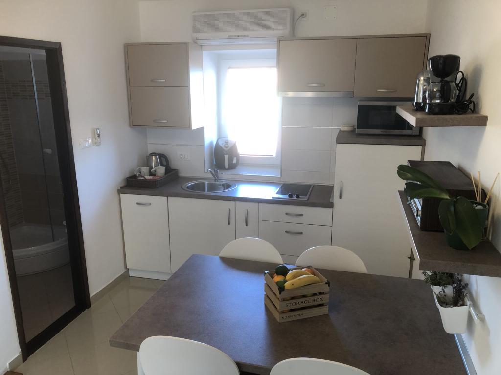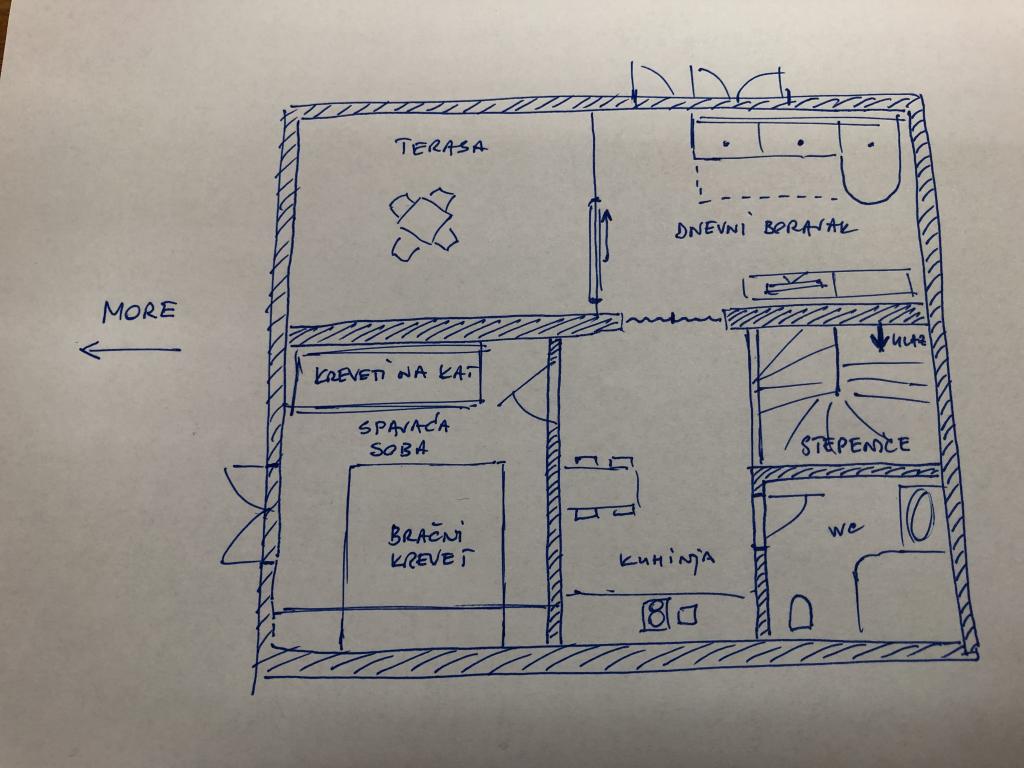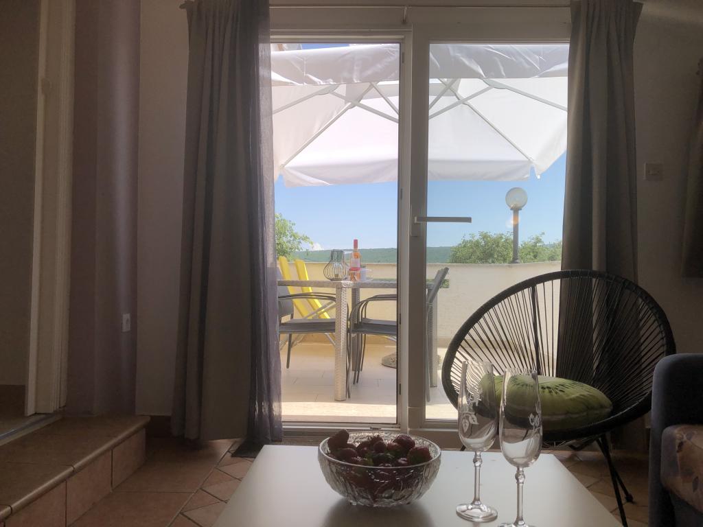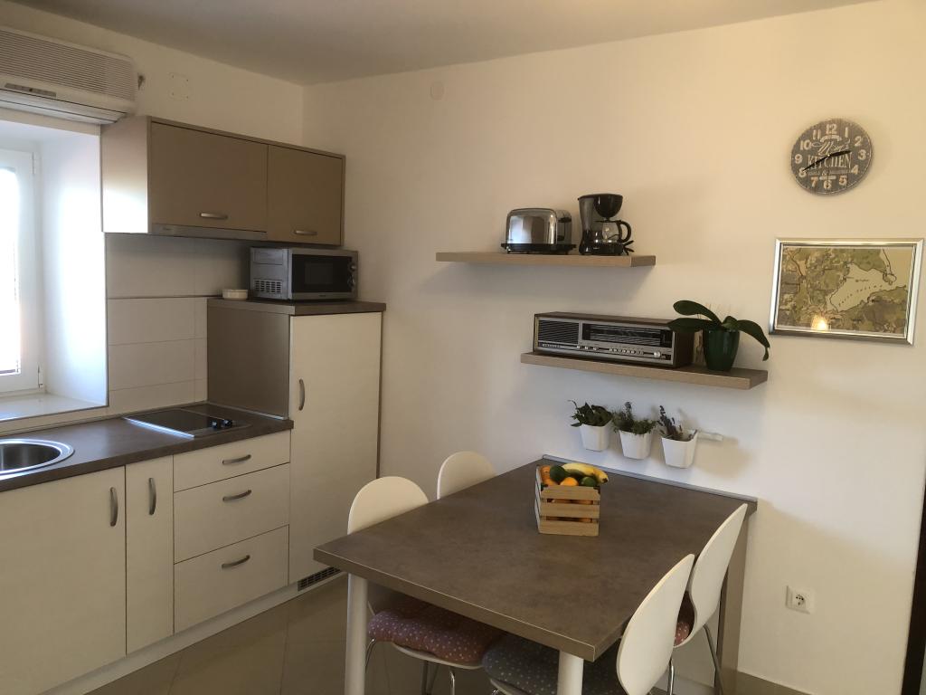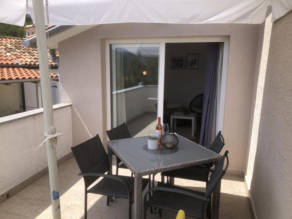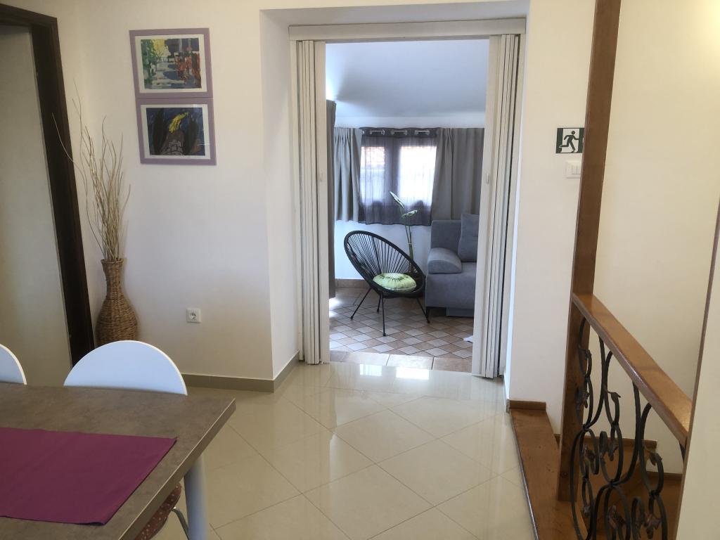 The newly renovated apartment is on the second floor of the house in the center of Čižiči, 5 minutes walk to the beach. Especially for a quiet family holiday with small children. Separate entrance, large terrace, satellite TV, Wi-Fi, parking.