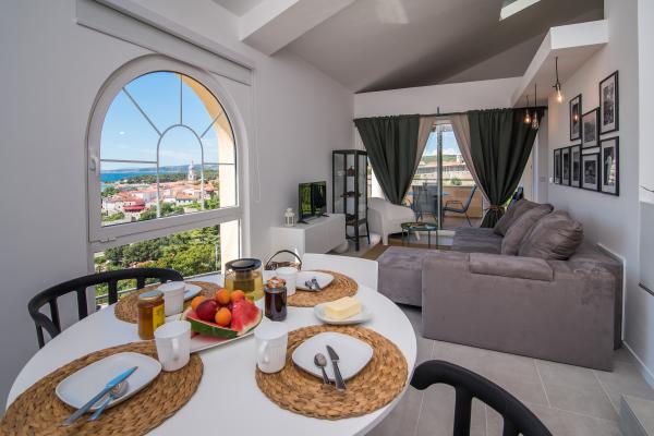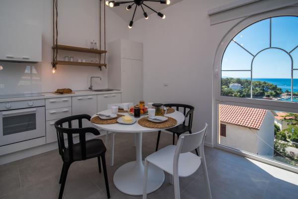 This apartment is a 2-minute walk from the beach and the old town. Provides one of the most beautiful views of the old town. It has free parking. Equipped with a flat-screen TV, air conditioning and free WIFI. The kitchen contains a dishwasher, a coffee maker and hot water, a microwave, an oven, besides this apartment is equipped with a washing machine and a bathroom and a small toilet.