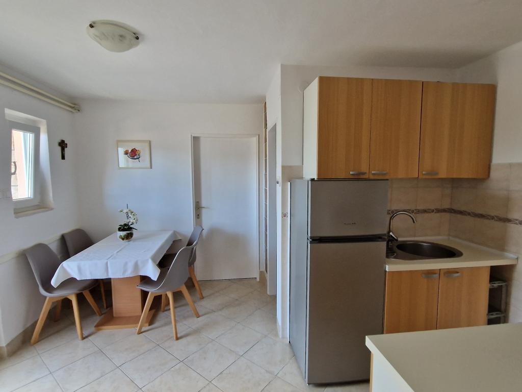Apartment in a quiet and attractive location in Krka, surrounded by greenery, with a view of the sea and city walls. The facility is located 80 m from the beach and 100 m from the center. The facility has its own parking lot. The apartment consists of 2 bedrooms with double beds, kitchen, dining room and bathroom. There is an extra bed in one bedroom. The terrace with seating offers relaxing moments during the day or evening. The nearby beaches offer a variety of sports and leisure facilities. Welcome!