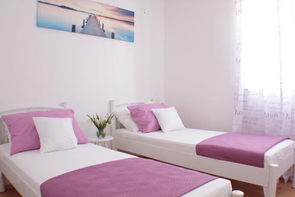 Location is very good, quiet neighborhood of the town of Krk, close to the center. Very close to the beach and walking along the coast and the nearby forest. A good base for exploring the island. Apartment clean and spacious, standard equipped kitchen. Large parking directly at the property. Despite being at the same time staying with several families, even with small children, there was no problem with the noise. Helpful and kind owner.