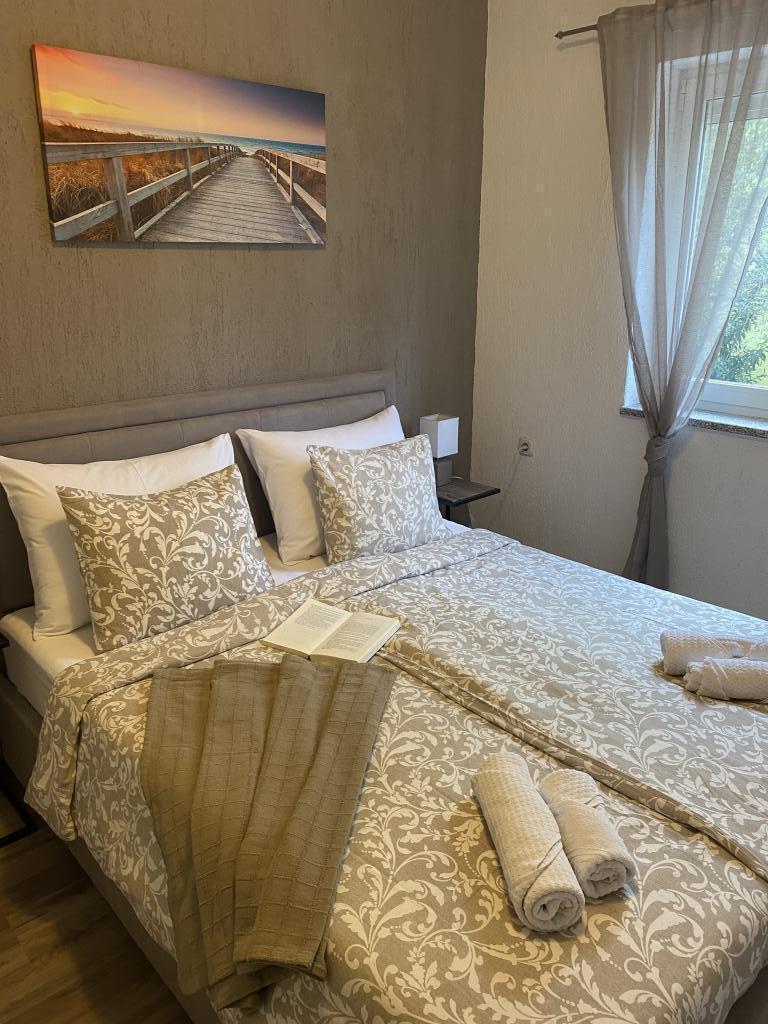 Residential tax is included in price. Booking confirmation document upon reservationCheck-in was completely seamless. A small bottle of homemade liqueur and cookies were waiting for us on the dining table. The apartment is beautifully furnished, and the garden is beautifully landscaped, with a stone grill and a seating area. It's a very inviting place to linger. The landlady is also very friendly and helpful. The nearby beach is just a 5-minute walk away. There are also two good restaurants there. The beautiful old town of Krk is also nearby (a 15-minute walk). We loved everything and would recommend it. We felt very comfortable there.