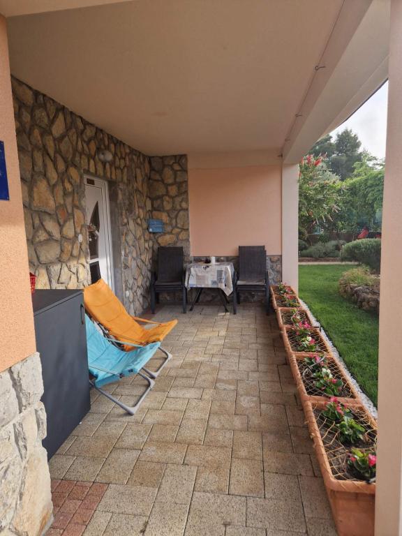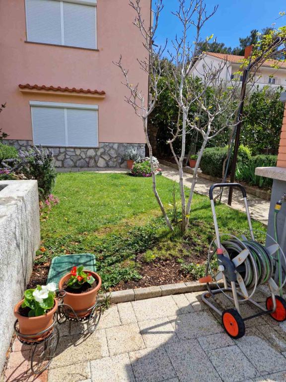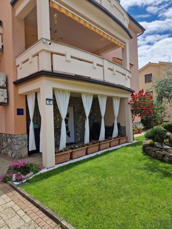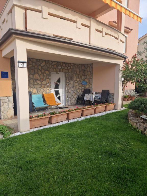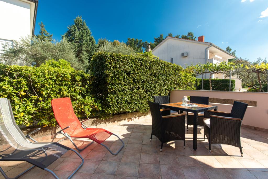 Modernly equipped apartments in a quiet area of the Town of Krk, close to all amenities. The property is located a 5-minute walk from the beach, 10 minutes from the center. APP1 is located on the first floor with a large terrace, and APP 2 and APP 3 are on the ground floor. Each apartment has its own parking space.