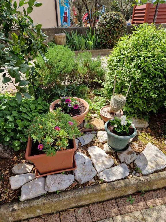 In the beautiful garden for three apartments, guests have access to a barbecue. The apartments have deck chairs and complete seating sets on the terraces. The price includes WIFI and air conditioning. All apartments have washing machines.