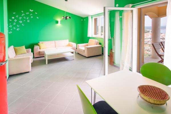 The apartment is located on the 1st floor, located in a quiet attractive location, has a covered terrace with a beautiful view of the sea and the old town. Only 10 min. walk to the center and beaches nearby for everyone's taste. We will gladly help you advising where to go on the trip, dinner or going out. We are looking forward to your arrival!