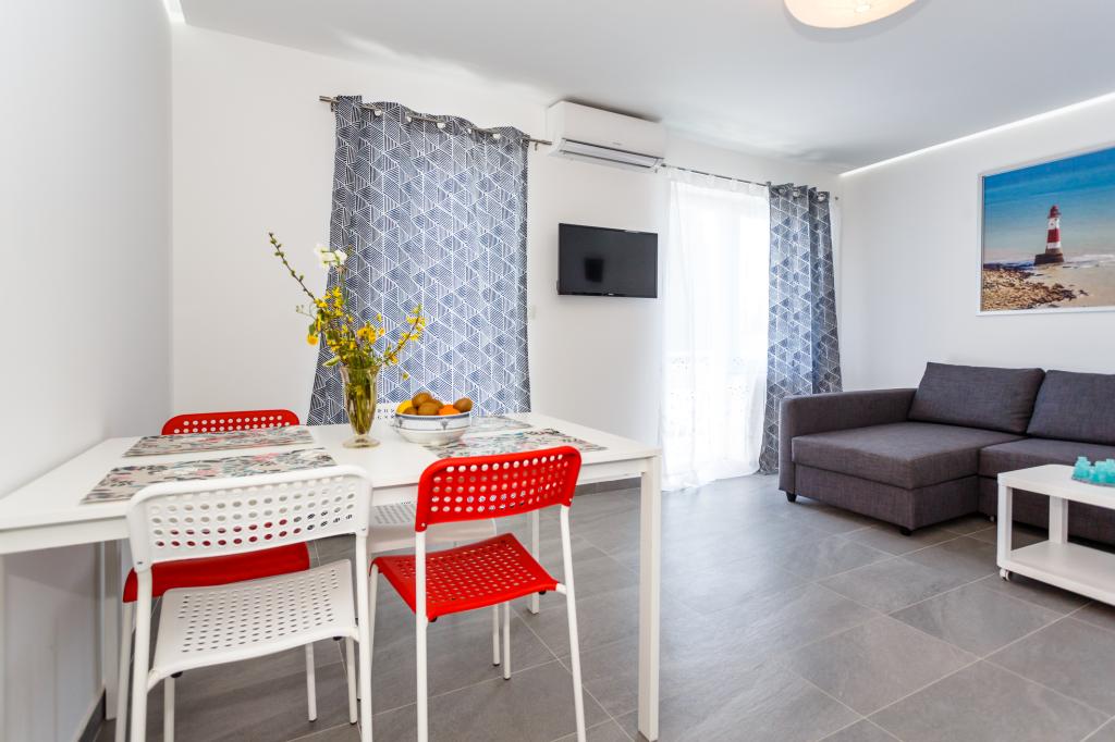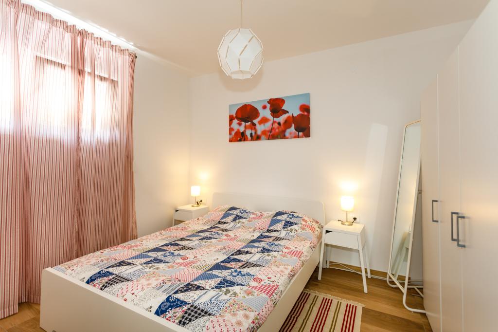 Hello! :) This is our brand new apartment located near the center of Krk (about 5 minutes walk). The apartment has one bedroom with a double bed, a living room with a sofa that can be converted into a double bed, a kitchen and one bathroom with necessary accessories. It also has a balcony, where you can enjoy the sun at any time of the day. We offer free parking space in the shade, free air conditioning, smart TV with Netflix, a BBQ grill in the garden next to the apartment and free WiFi.