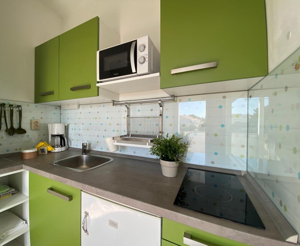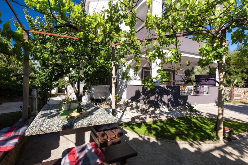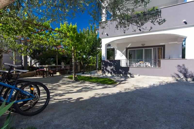 The house is situated at a very convenient location, in a quiet neighborhood, a few minutes on foot away from the beach and ten minutes walk to the downtown. The facility consists of 5 apartments. Three of them are studios for up to 2 persons, one apartment for up to 3 persons and a 75 square meters apartment for up to 5 guests. Each apartment has its fully equipped kitchen, lovely balcony or terrace, private entrance and secured parking space. A shared garden with barbecue facilities is at guests' disposal. ***Pets are welcome with a prior announcement and at an extra fee of 12 eur per day (payable on the spot).