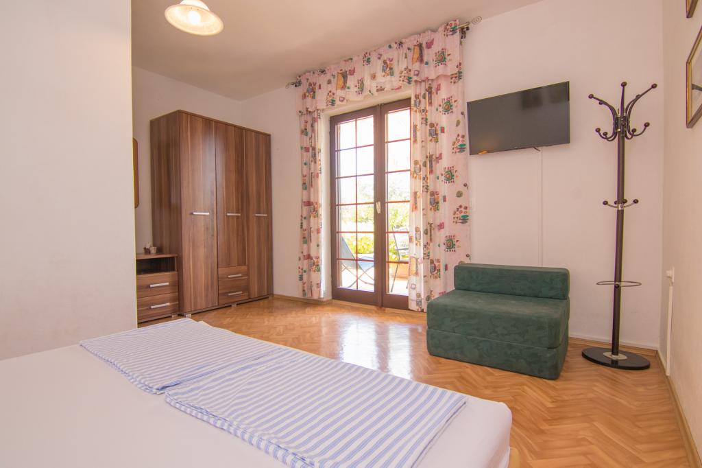 Our house with apartments is located in a quiet part of Krk. The apartments are located on the ground floor, next to each other. They are modernly equipped. Each has its own terrace, surrounded by hydrangea flowers. , overlooking the garden. Parking is in the yard, covered with awning. PLAV beach is a 2-3 minute walk from our house. The owners live on the first floor of the house.