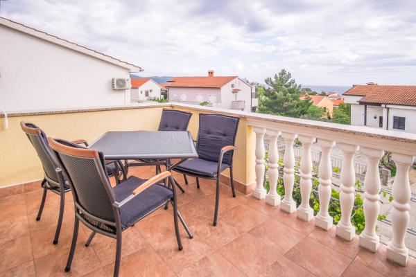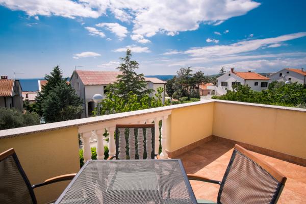 Large, beautifully furnished apartment in a quiet part of Krk. Great big bed, terrace with sea view, big TV, suitable for pets...