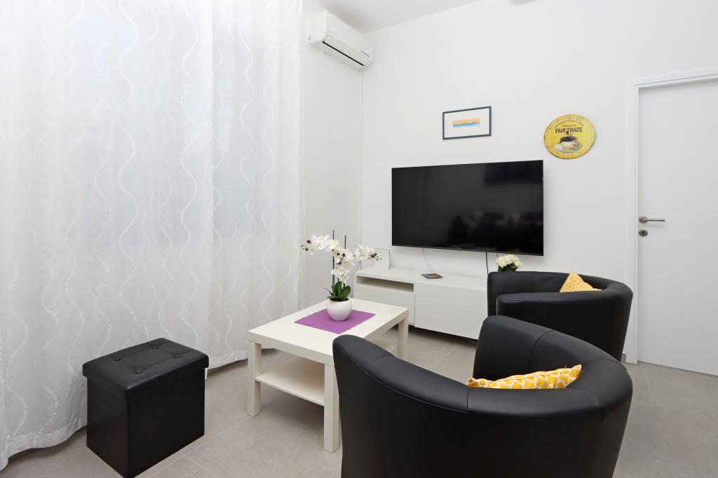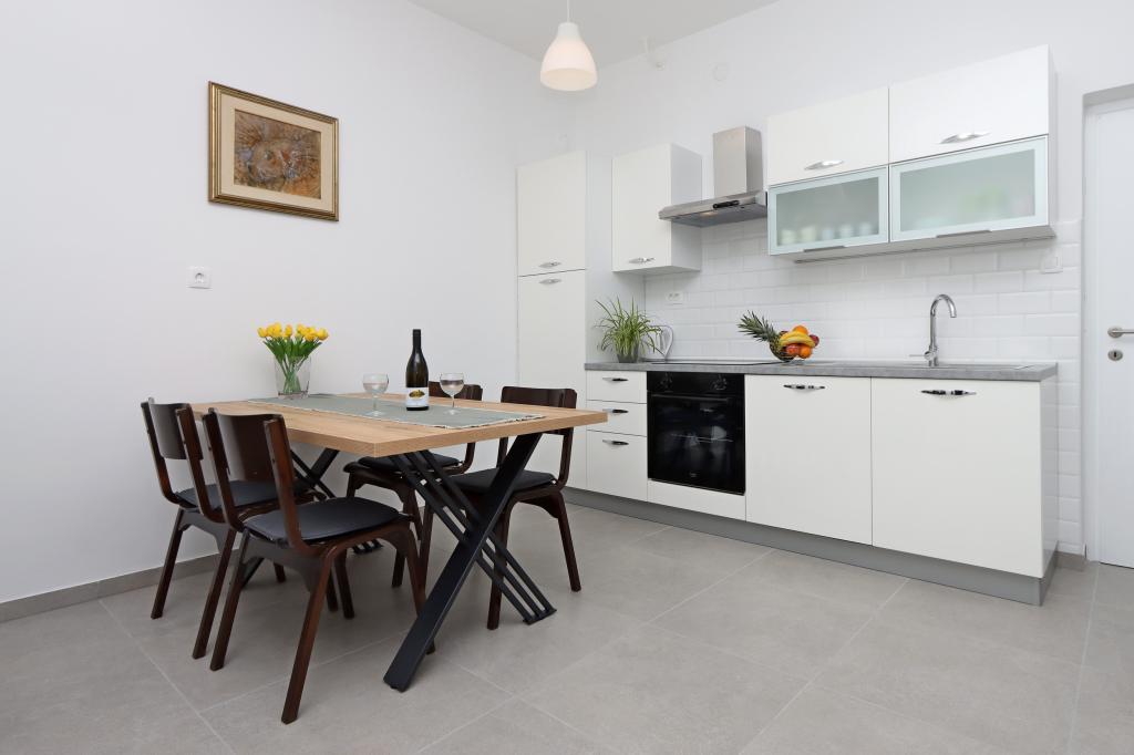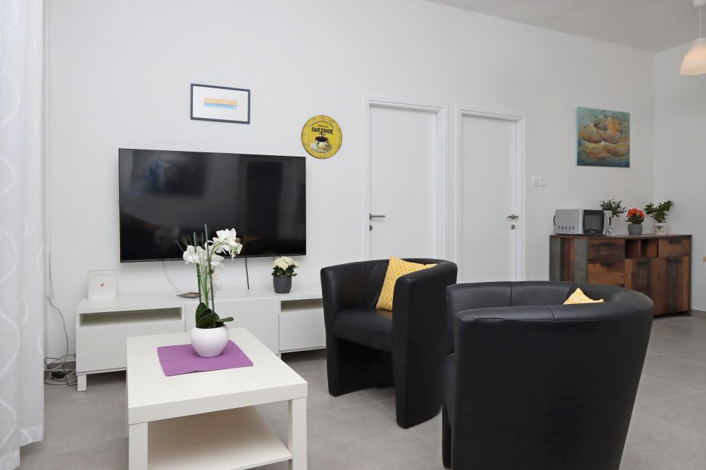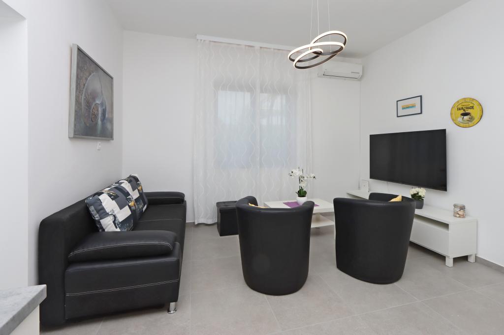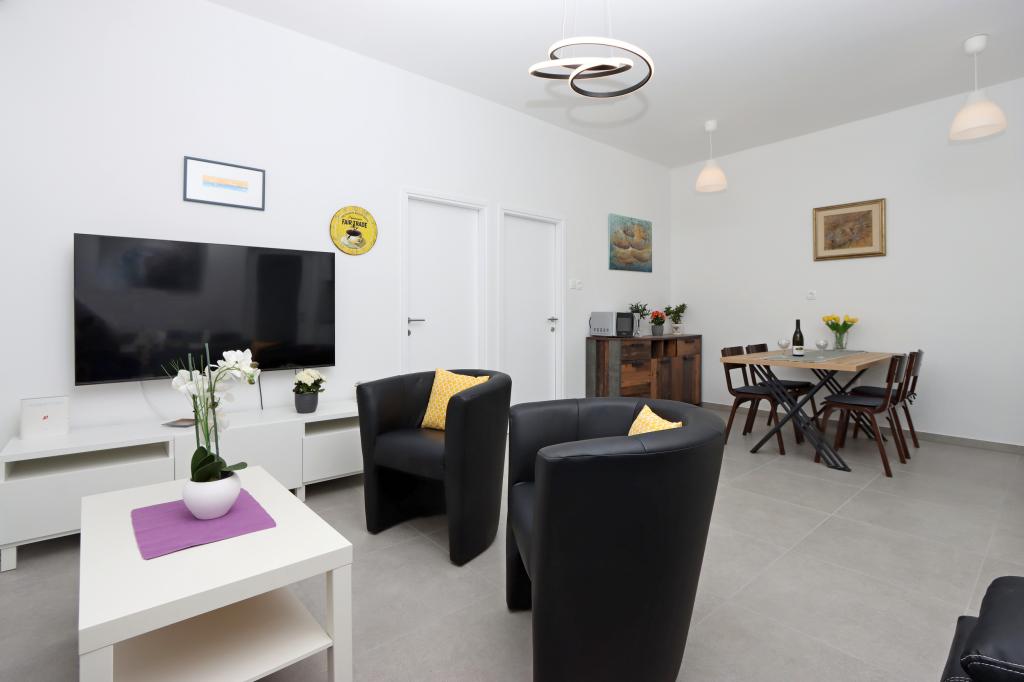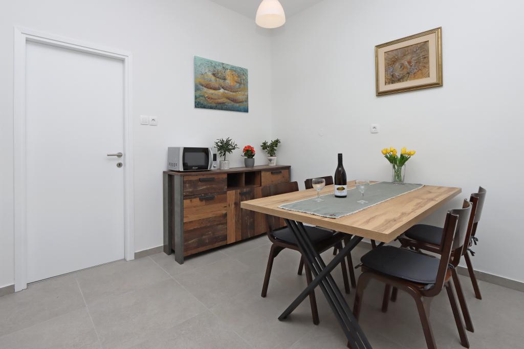 The apartment is excellent, we had everything and even more that we wanted. The location is perfect - close to the beach, marina and the old town. What is more, the city itself is the best option for longer holidays on Krk - it\'s in the middle of the island, so you can visit every town within 30-40 min. The apartments are clean and fully furnished, air conditioning works well. We really liked the terrace next to the apartment, as throughout the whole day it\'s not in a sunny place - we relaxed there a lot, sat in the evenings and ate breakfasts. Perfect! It\'s impossible not to mention the incredible Dujmović family. Extremely kind, warm and hospitable people. We didn\'t have any problems with communication. Sandra and her wonderful mom are really helpful and made our stay in Krk better than we thought it would be. We really recommend you this apartment!