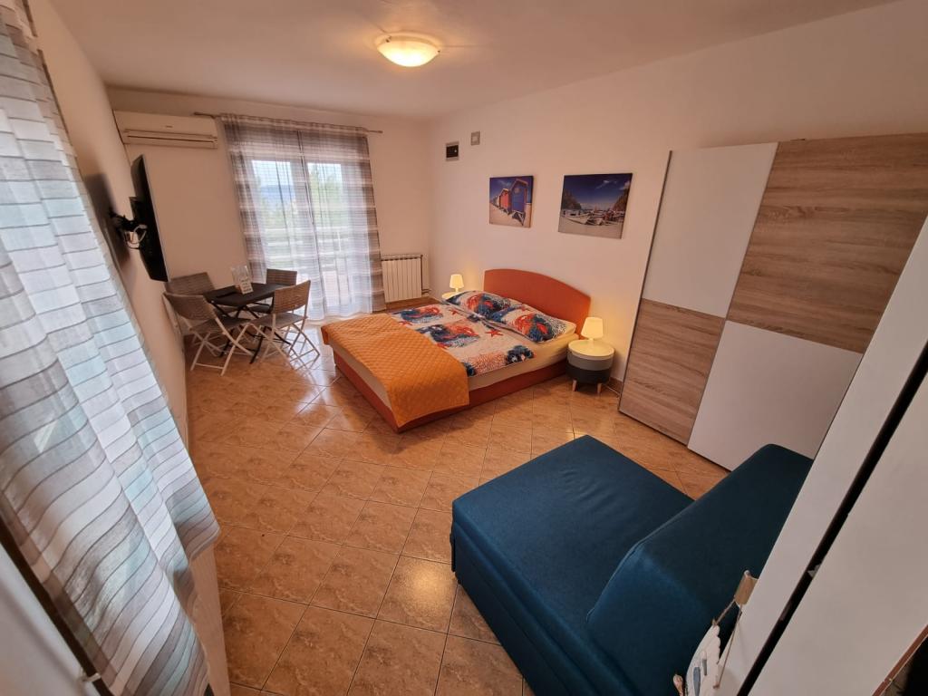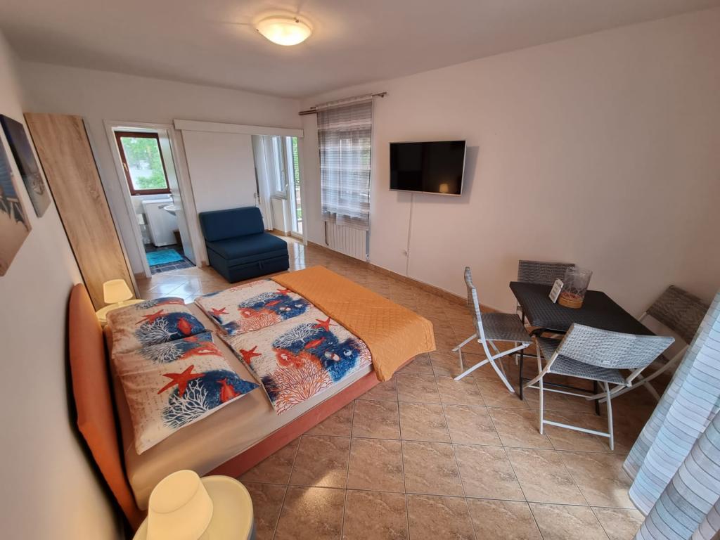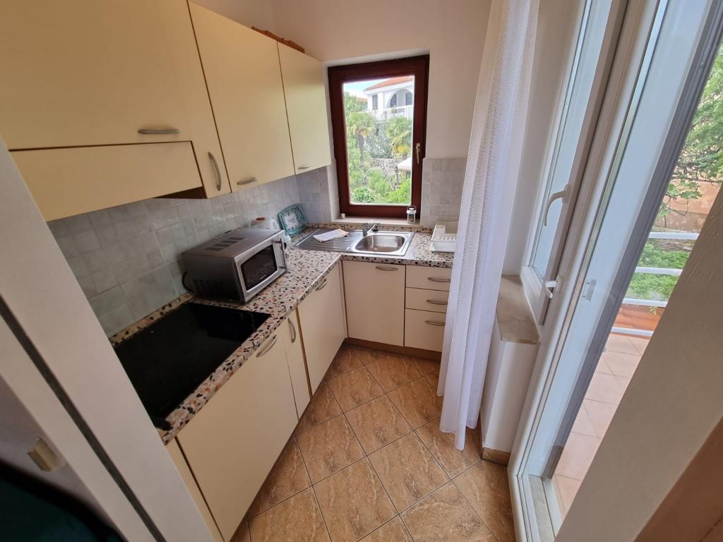 Beautiful apartments near the sea and beach in the attractive part of the town of Krk with large terraces which offer a unique view of the sea and panorama to the islands Plavnik, Cres, Losinj and Rab. Apartment Ida (2 2 persons) and Apartment Miha (2 1persone) have every comfort, air conditioners, washing machines, microwave ovens, central heating, Internet, satellite TV. The apartments are located next to each other, and the opening of the passage on the terrace can be used by the community for families with more children or friends. Guests can also use the Mediterranean garden with barbecue.