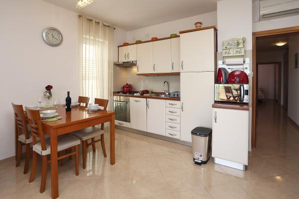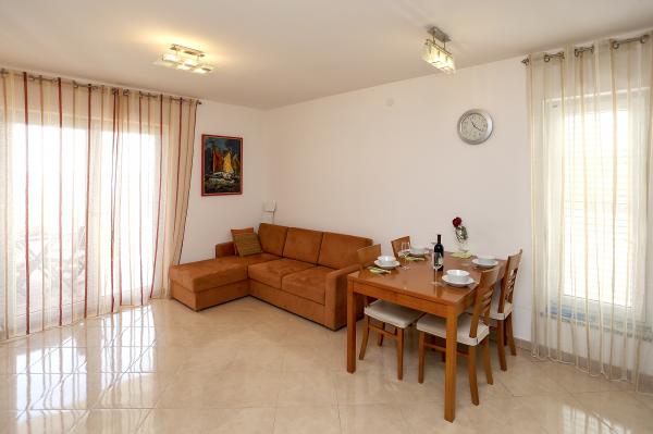 Fully equipped apartment, in a quiet area overlooking the city harbor. Located by the sea. The facility is located 10min. walk from the town center and lies directly on the beach. The apartment is located near the maritime passage Zdrelac between the islands of Ugljan and Pasman (the door of Kornati) approx 15min. walk to the bridge that connects the islands of the same name. In the vicinity there is a votive church of Our Lady of the Snows, whose Fiesta, popular held 05th August In the center of 15 min. walk there are facilities like post office, marina, sports facilities (indoor soccer, handball, basketball), scuba diving as well as several restaurants and taverns where you can enjoy a menu of