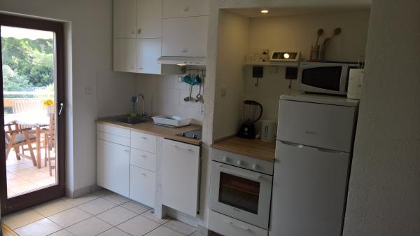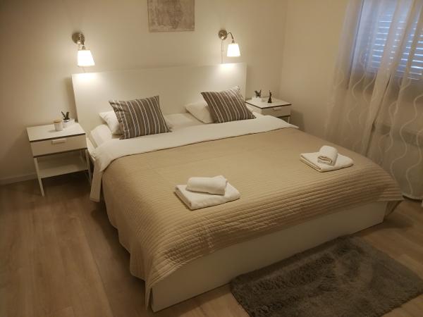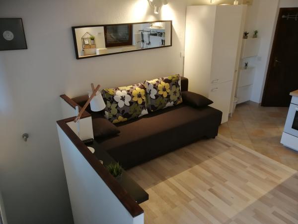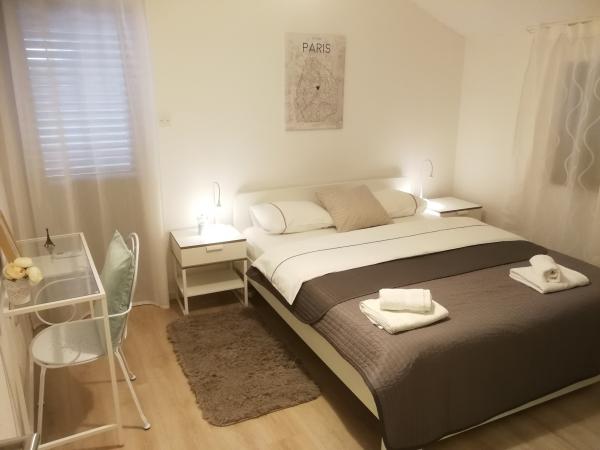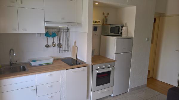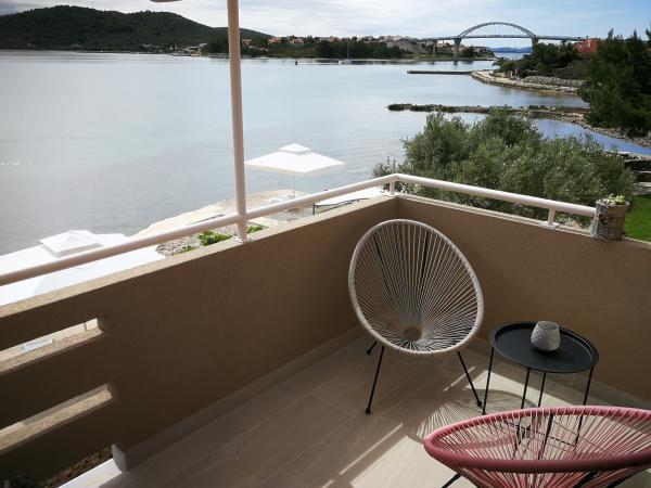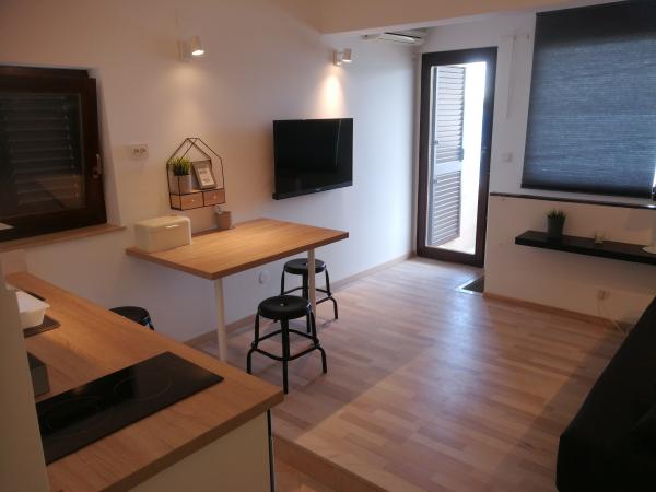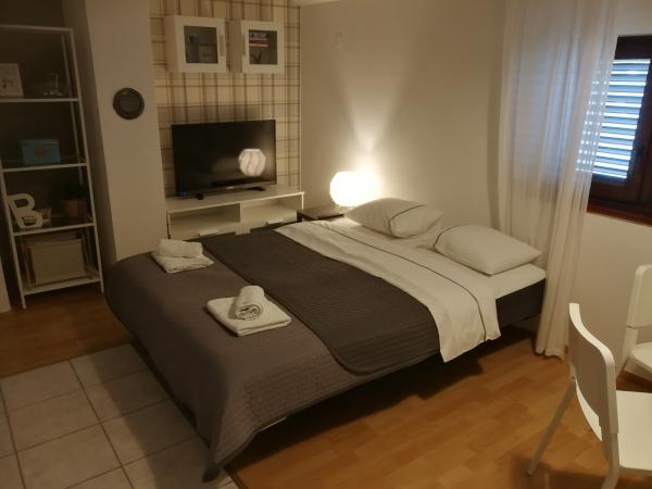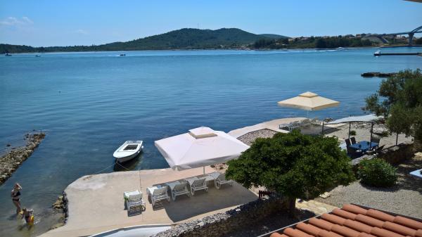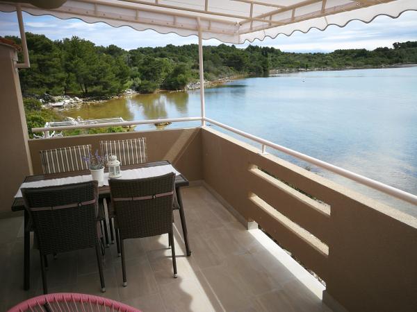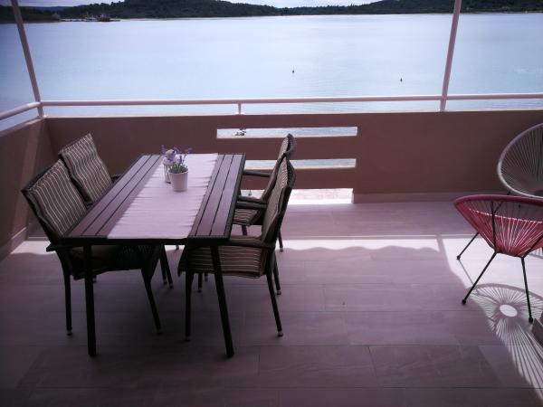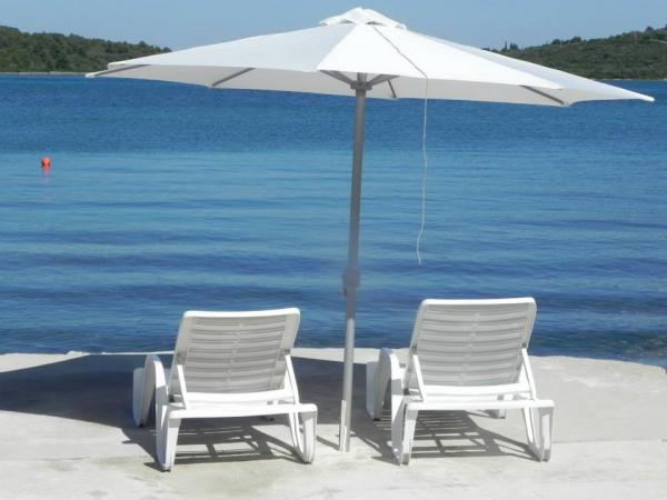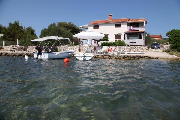 Apartments Lonić are located in Kukljica, in the southeastern part of the island of Ugljan, in a natural protected bay formed by the islands Ugljan and Pašman at the nautical gate of the National Park Kornati. They are located 1 km from the town center, just by the sea, with a beach that only the guests of the apartments are making and are an ideal and safe family vacation setting. All three apartments have a beautiful terrace with table and chairs, living room and kitchen, one bedroom, hallway and bathroom with shower. Apartments are suitable for up to 4 people (2 2pp). The kitchen is equipped with all necessary appliances and amenities for a pleasant stay (dishes and utensils, dishwasher, oven, stove, refrigerator with freezer, toaster, coffee maker, kettle, mixer, ...) while living room equipped with LCD TV- (102 cm) with cable ducts and air conditioning. All apartments have Wi-Fi internet available even on the beach. The beautiful sandy beach is extremely safe for the youngest children.