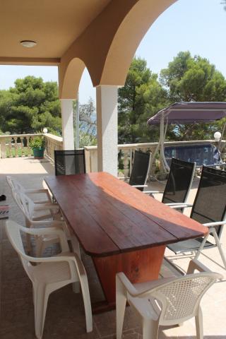 Surroundings of the house beautiful, for renting deck chairs, swimming circles. Around the house sitting, hanging swings, accommodation by the sea. But the house is located in a canal, passing by 1000 ships every day, walking close, so you can not swim anywhere anymore, from morning to evening from the big waves, the sea raging and the cold, a little further behind the church is a stony beach, better entry into the sea, but an incredible mess. The accommodation corresponds to the photos, but it is not written anywhere that you have a shared terrace with other people with whom you look at the saucers.