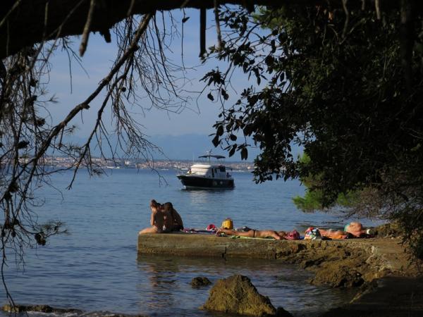 Apartments Tereza are situated outside the center of Kukljica, Gnjojišće bay, in a quiet area surrounded by pine trees. With spacious ests see the beach and sea. When it comes to the house and parked the car can all be done on foot. Buying food at the market and shop, dinner in a restaurant, work in mjenjačnicci and mail, and the beach is just a few steps. I make coffee, prepare cake and handing them to the beach in a shady spot. Under the shade of a pine close to the sea you enjoy the waves and drinking coffee. The house has a large fireplace and a table in the shade of a fig tree. The ambiance is perfect for a garden party. For those who love cycling can choose paths through the pine forest or bike paths along the coast and to neighboring towns. The promenade along the sea is 80 meters.