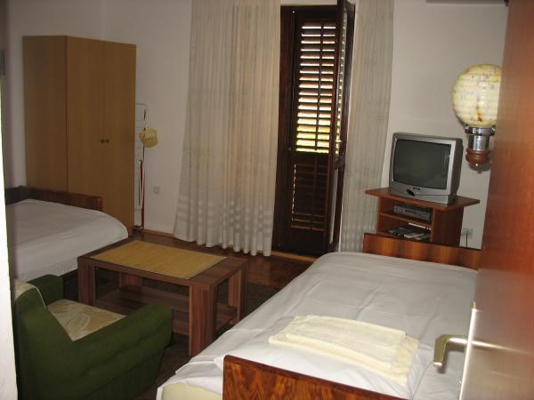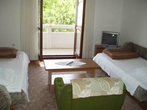 Apartments Tomislav located in the southern part of town near the beach Kukljice United Sabuša. The beach is clean, sandy and surrounded with pine trees. Good for children and adults. Access to the beach only by foot. The house is surrounded by a garden where there is a desk in the apartment where you can enjoy the shade. The house is directly on the road so the children can play freely around the house. The yard is a barbecue, which is available for guests with accommodation and parking for your car. Apartments are four, 50 m2 with two bedrooms, bathroom, kitchen, dining room and balcony. Fully furnished with TV, satellite receiver , air conditioning and WI-FI internet (free)