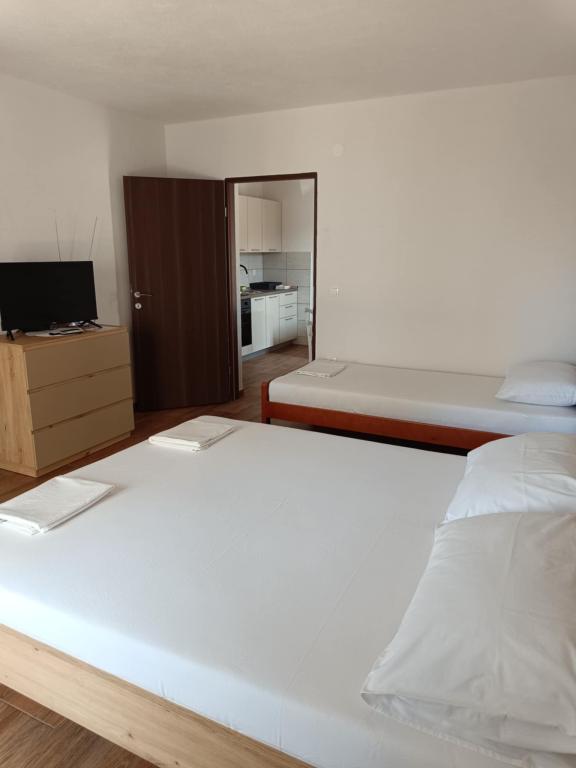 Leonard Apartments We are located in a small and quiet place Kustići! We offer new and fully equipped apartments with parking. Each apartment has air conditioning, Wi-Fi, bedding, TV, fully equipped kitchen and terrace. The beach is 20 meters away, and shops, restaurants and a bakery are in the area of the apartments! The town of Novalja is 6 km away! We also have moorings for boats that are 20 meters away from the apartments!