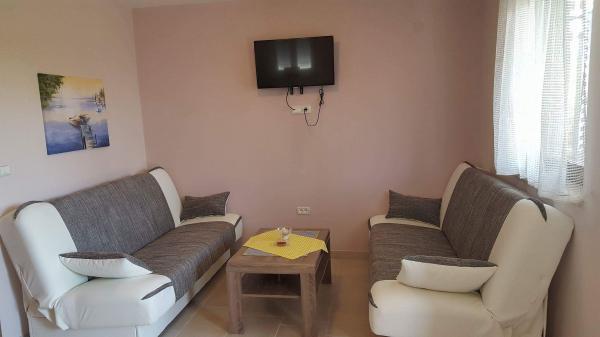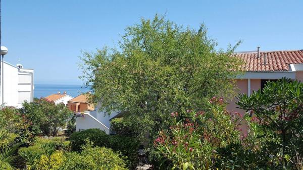 Modernly equipped and very comfortable apartment \ Nicole \, is located in a small village Ravni, 12 km away from Labin and 5 km from Sv. Marine, on the eastern coast of Istria. The property, surrounded by the Mediterranean garden, has a terrace overlooking the Kvarner Bay and the neighboring islands of Cres and Lošinj. It is located 350 m from the sea, a 5 minute light walks by local road to the beach or car to the parking lot next to the beach. The beach is pebbly, partly concrete and the sea is very clean. Apartment with capacity for 4 persons, located on the ground floor, has separate entrance, one room with double bed, living room with two beds, equipped kitchen and toilet with bathroom. It has air conditioning, WiFi and TV, and of course free parking for valued guests.